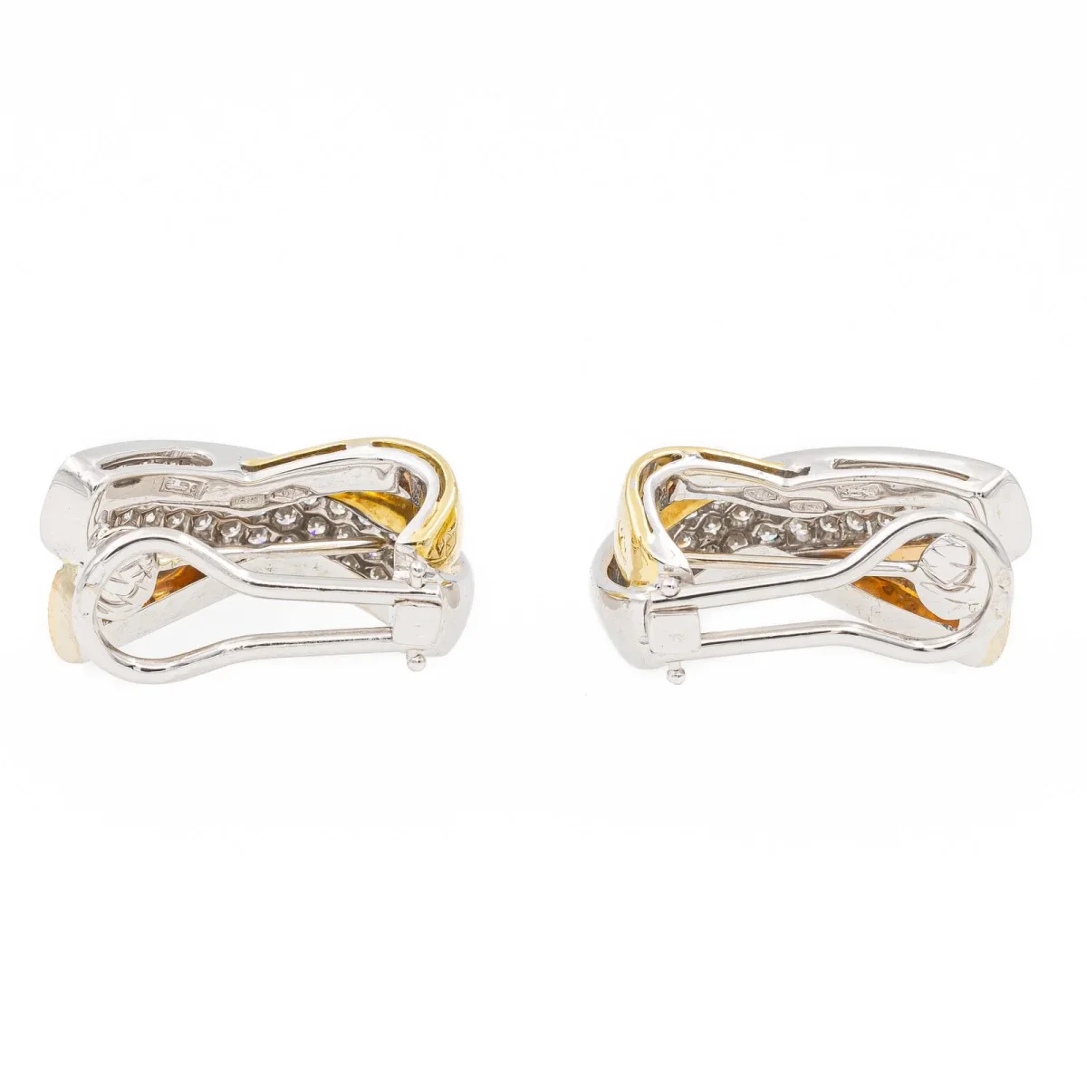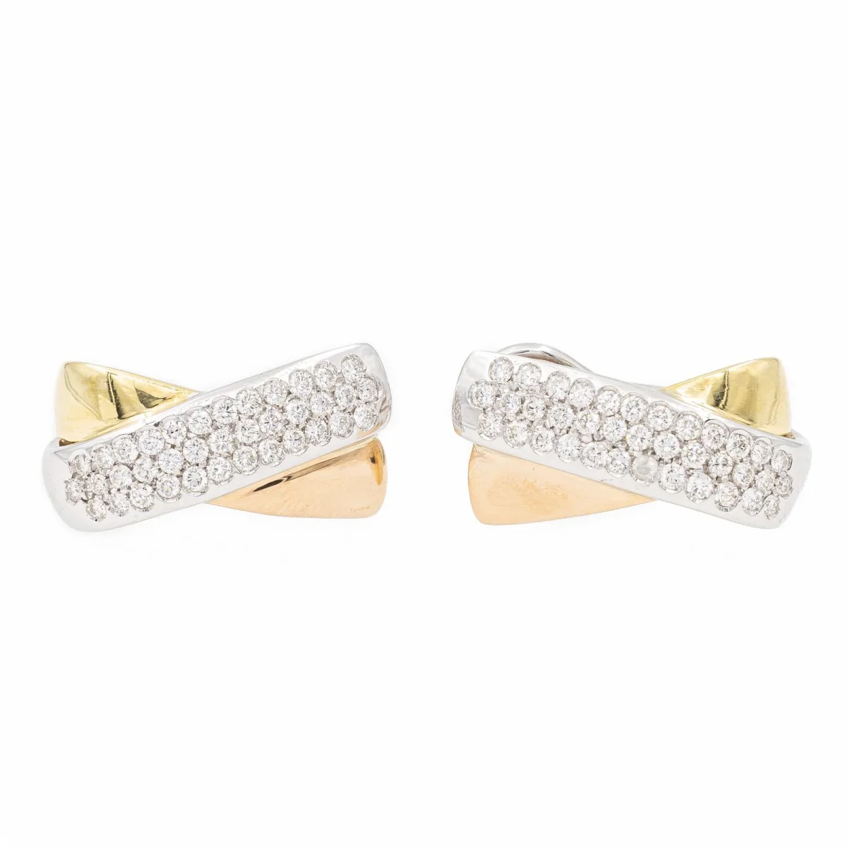 Boucles d’oreilles clips 3 ors 750 millièmes (18 carats), serties de 74 diamants taille brillant, d’un poids total d’environ 1,48 cts, estimés H/VS, dimensions: 2,3 cm x 1,18 cm, poids total: 15,12 g, poinçon tête d’aigle, excellent état