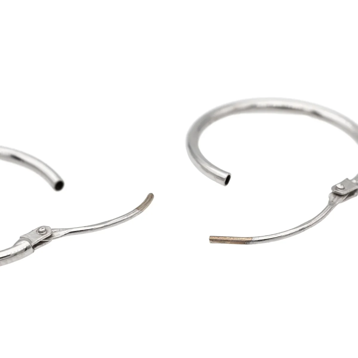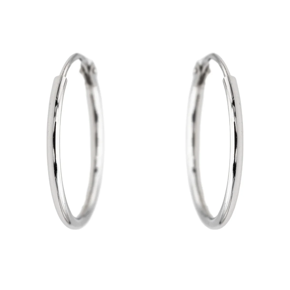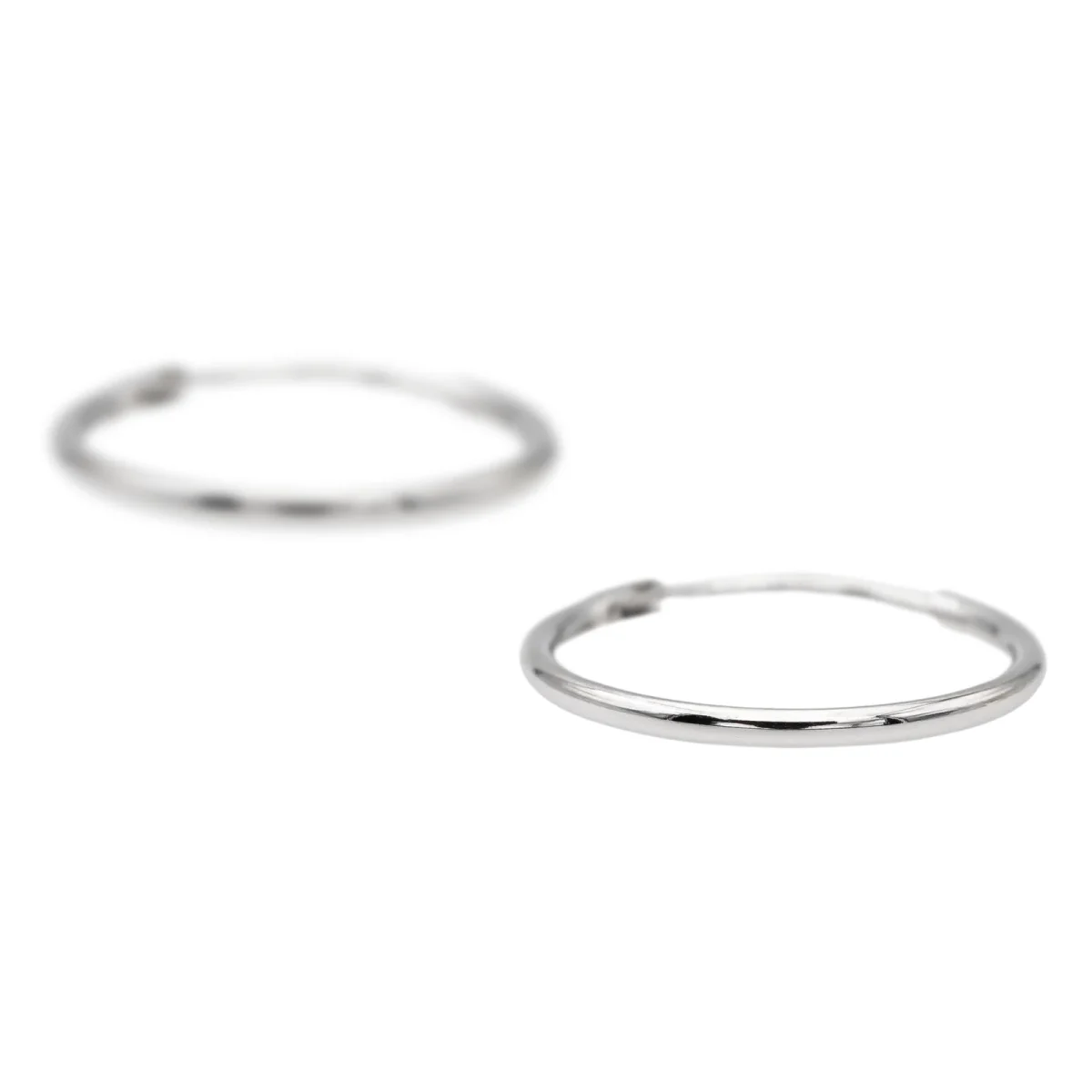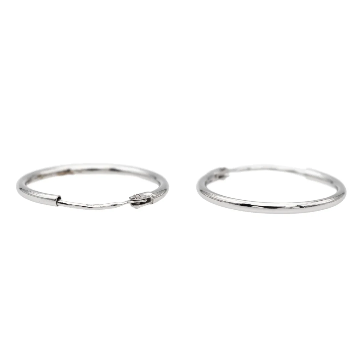 Créoles en or blanc 750 millièmes (18 carats) testé, fil rond, diamètre: 1,55 cm, largeur: 0,11 cm, poids total: 0,64 g, excellent état