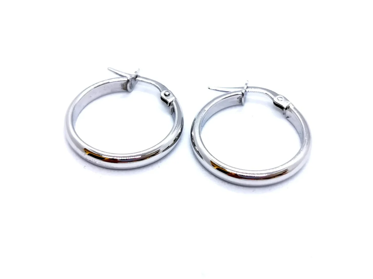 Créoles en or blanc 750 millièmes (18 carats) testé, fil rond, diamètre: 1,82 cm, largeur: 0,26 cm, poids total: 1,39 g, excellent état