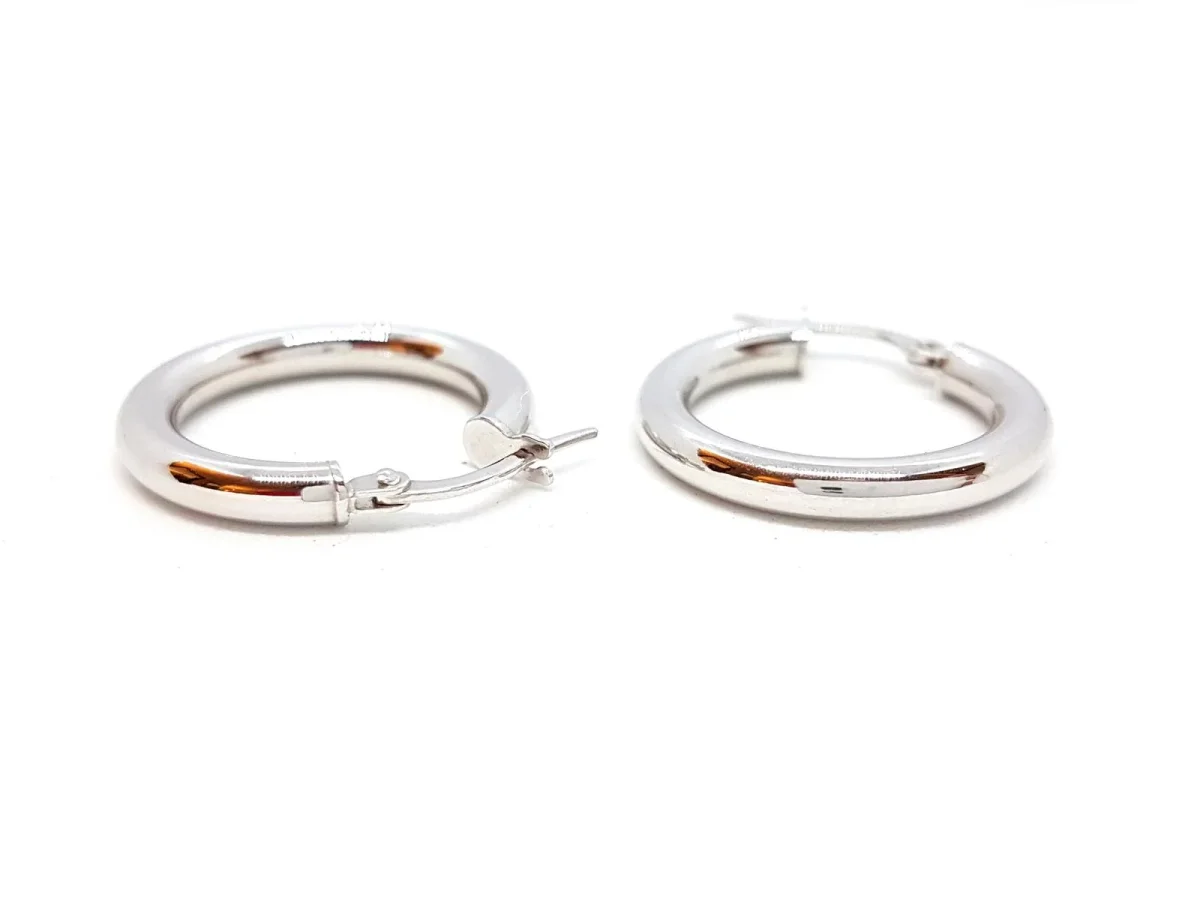 Créoles en or blanc 750 millièmes (18 carats), fil rond, diamètre: 2,1 cm, largeur: 0,28 cm, poids total: 1,82 g, état neuf