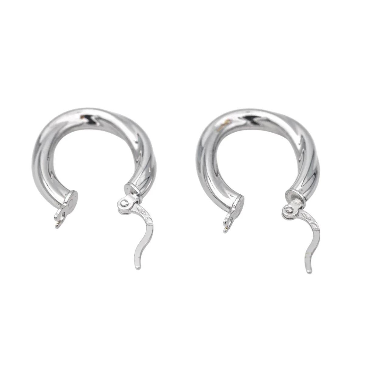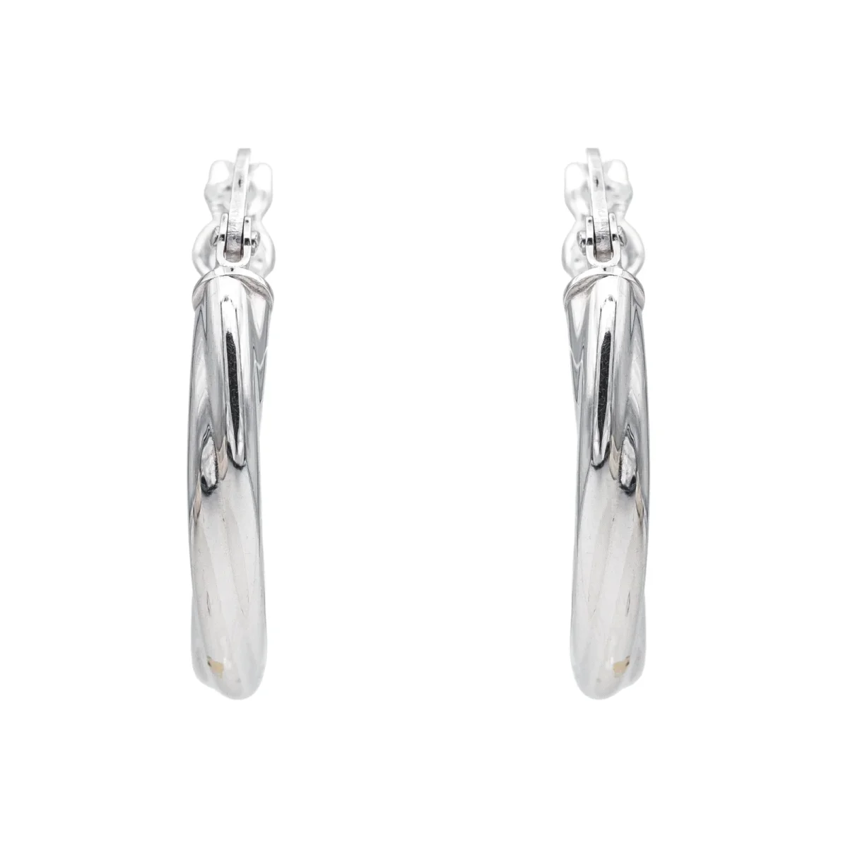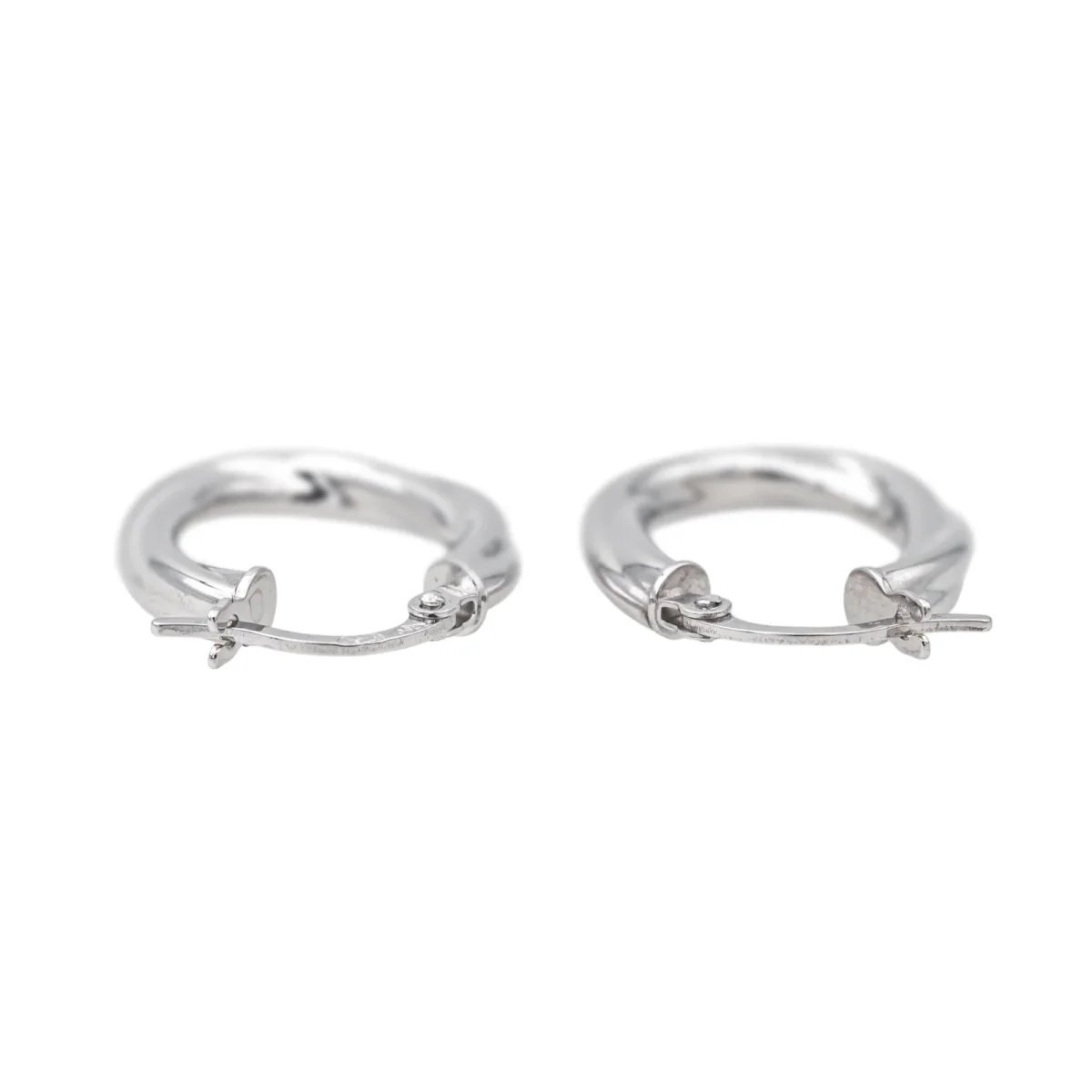 Créoles en or blanc 750 millièmes (18 carats) testé, fil rond ondulé, diamètre : 1,55 cm, largeur : 0,28 cm, poids total : 1,61 g, excellent état
