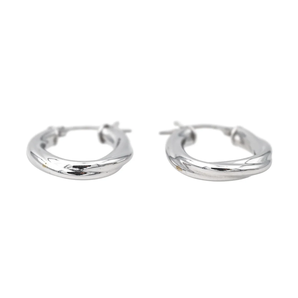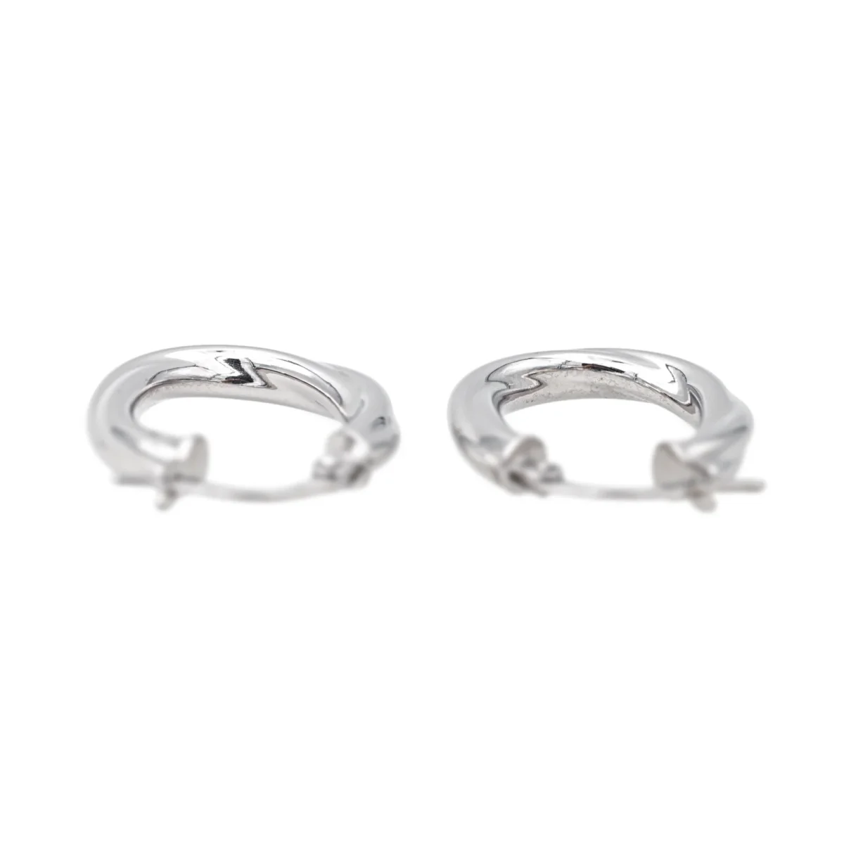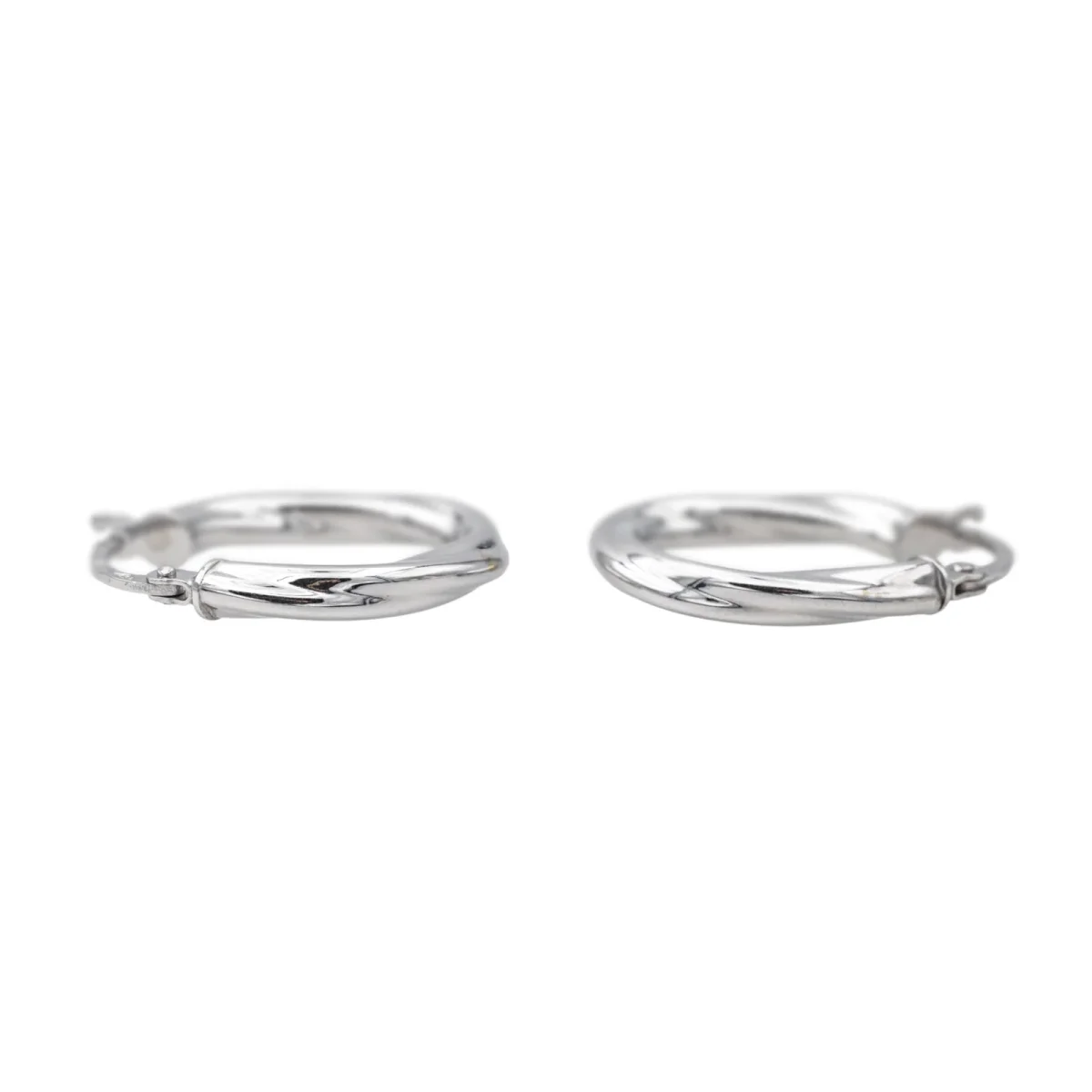 Créoles en or blanc 750 millièmes (18 carats) testé, fil rond ondulé, diamètre : 1,55 cm, largeur : 0,28 cm, poids total : 1,61 g, excellent état