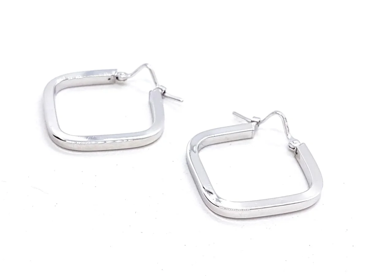 Créoles carrées en or blanc 750 millièmes (18 carats) testé, diamètre: 2,05 cm, largeur: 0,18 cm, poids total: 1,85 g, excellent état