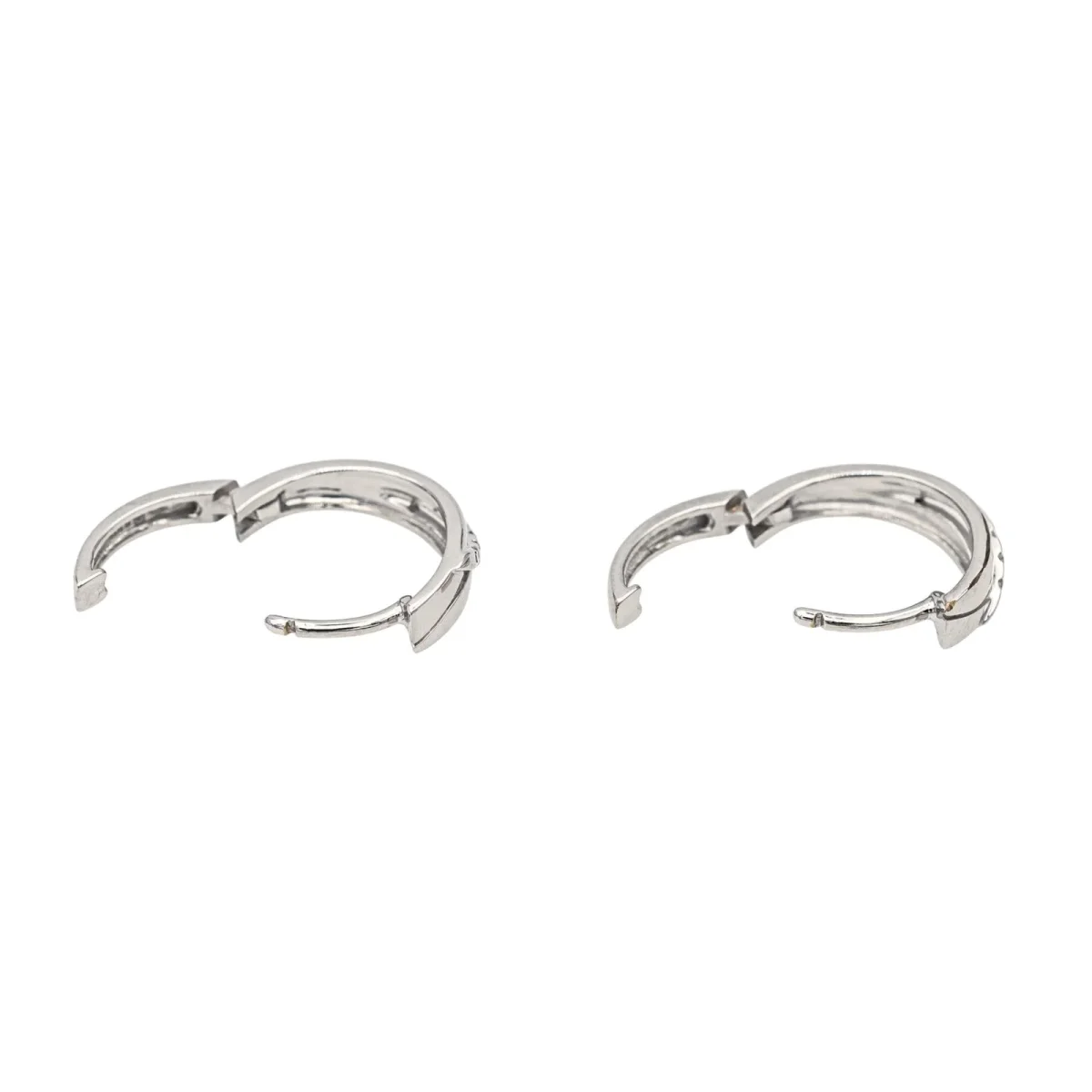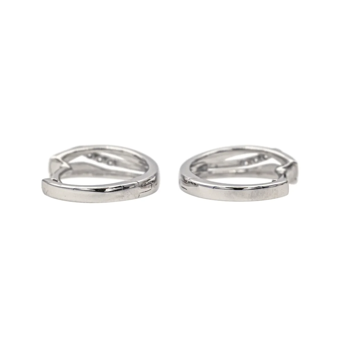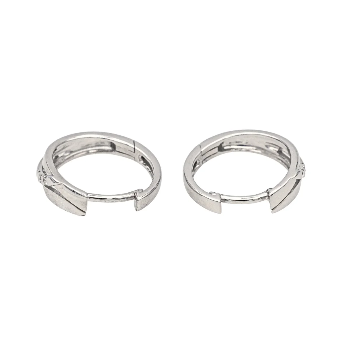 Créoles en or blanc 750 millièmes (18 carats), serties de 6 diamants taille brillant, environ G-SI, d’un poids total d’environ 0,03 ct, (chaque diamant d’un poids d’environ 0,005 ct), diamètre : 1,48 cm, largeur : 0,41 cm, poids total : 2,79 g, excellent état