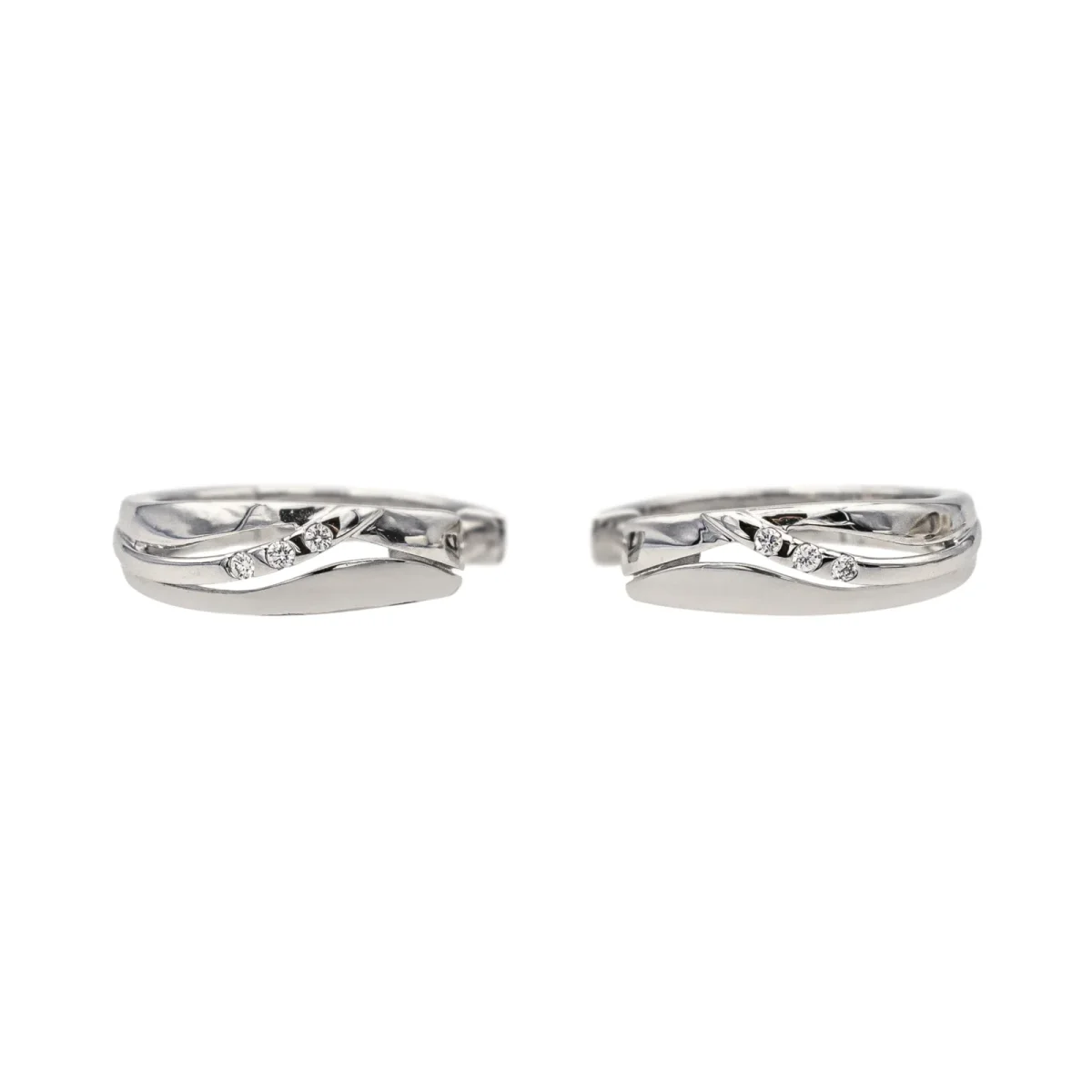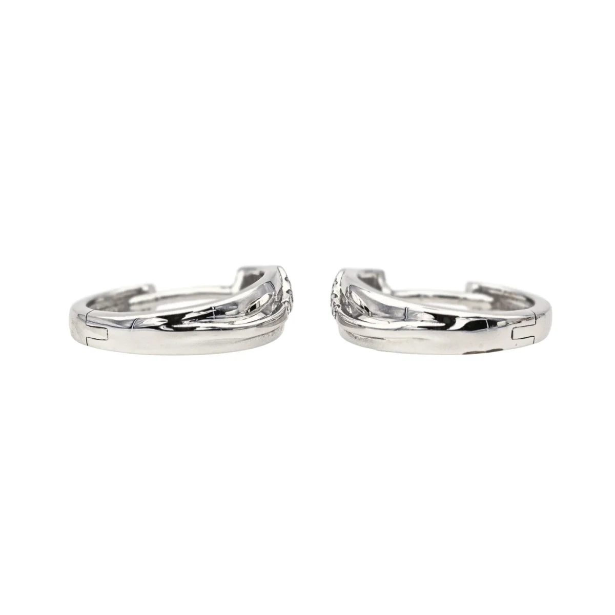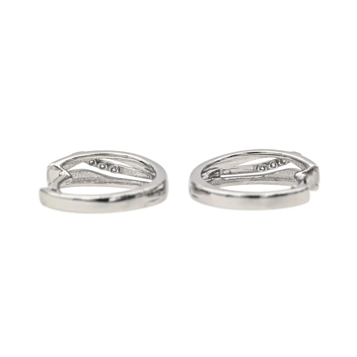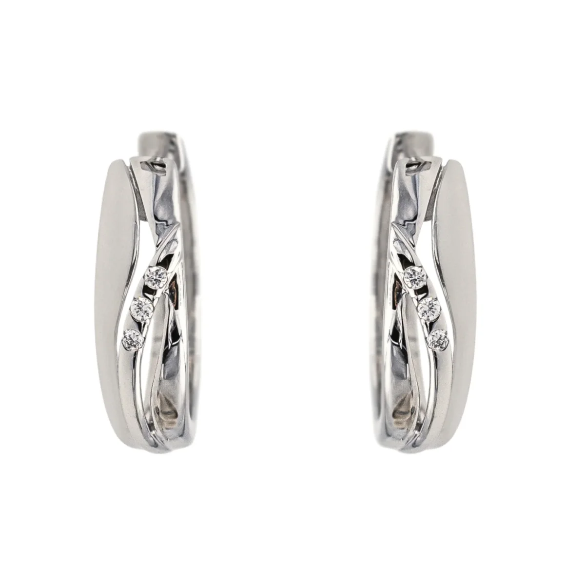 Créoles en or blanc 750 millièmes (18 carats), serties de 6 diamants taille brillant, environ G-SI, d’un poids total d’environ 0,03 ct, (chaque diamant d’un poids d’environ 0,005 ct), diamètre : 1,48 cm, largeur : 0,41 cm, poids total : 2,79 g, excellent état