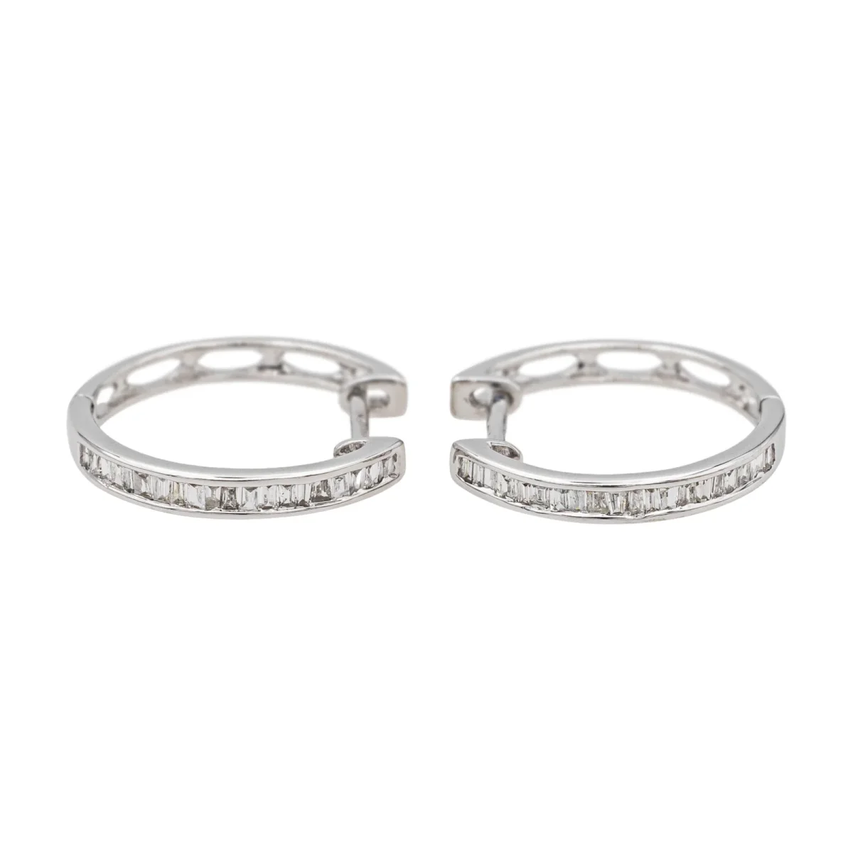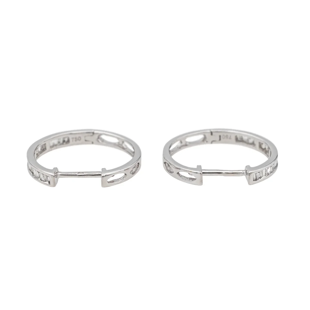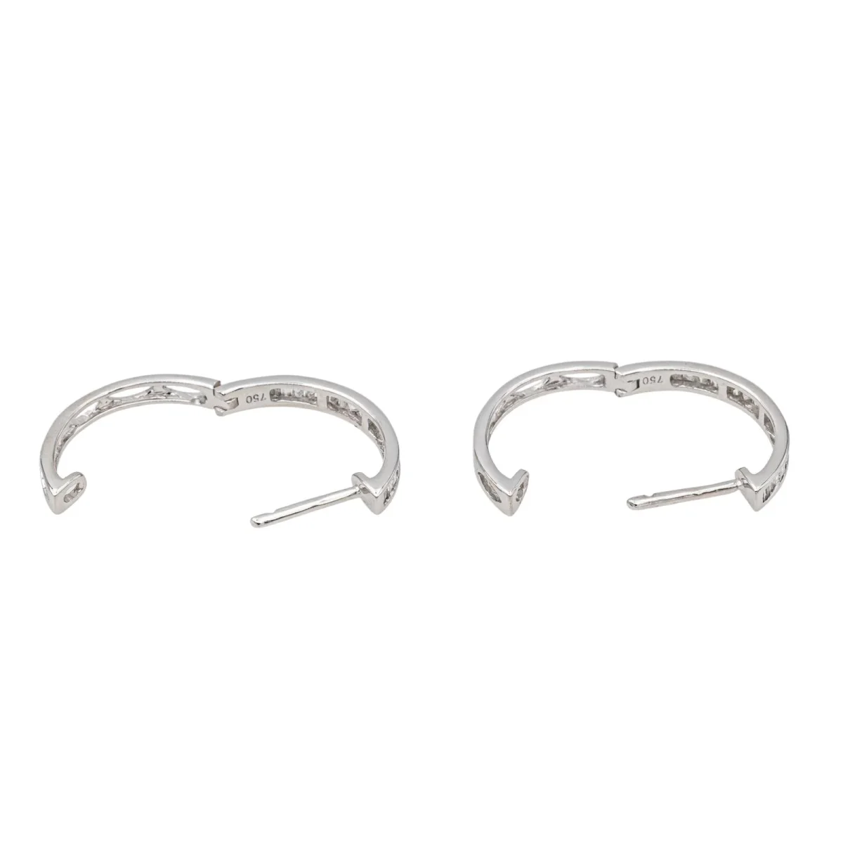 Créoles en or blanc 750 millièmes (18 carats) testé, 40 diamants taille brillant, environ G-SI, d’un poids total d’environ 0,20 ct, (chaque diamant d’un poids d’environ 0,005 ct), diamètre : 1,55 cm, largeur : 0,20 cm, poids total : 1,72 g, excellent état