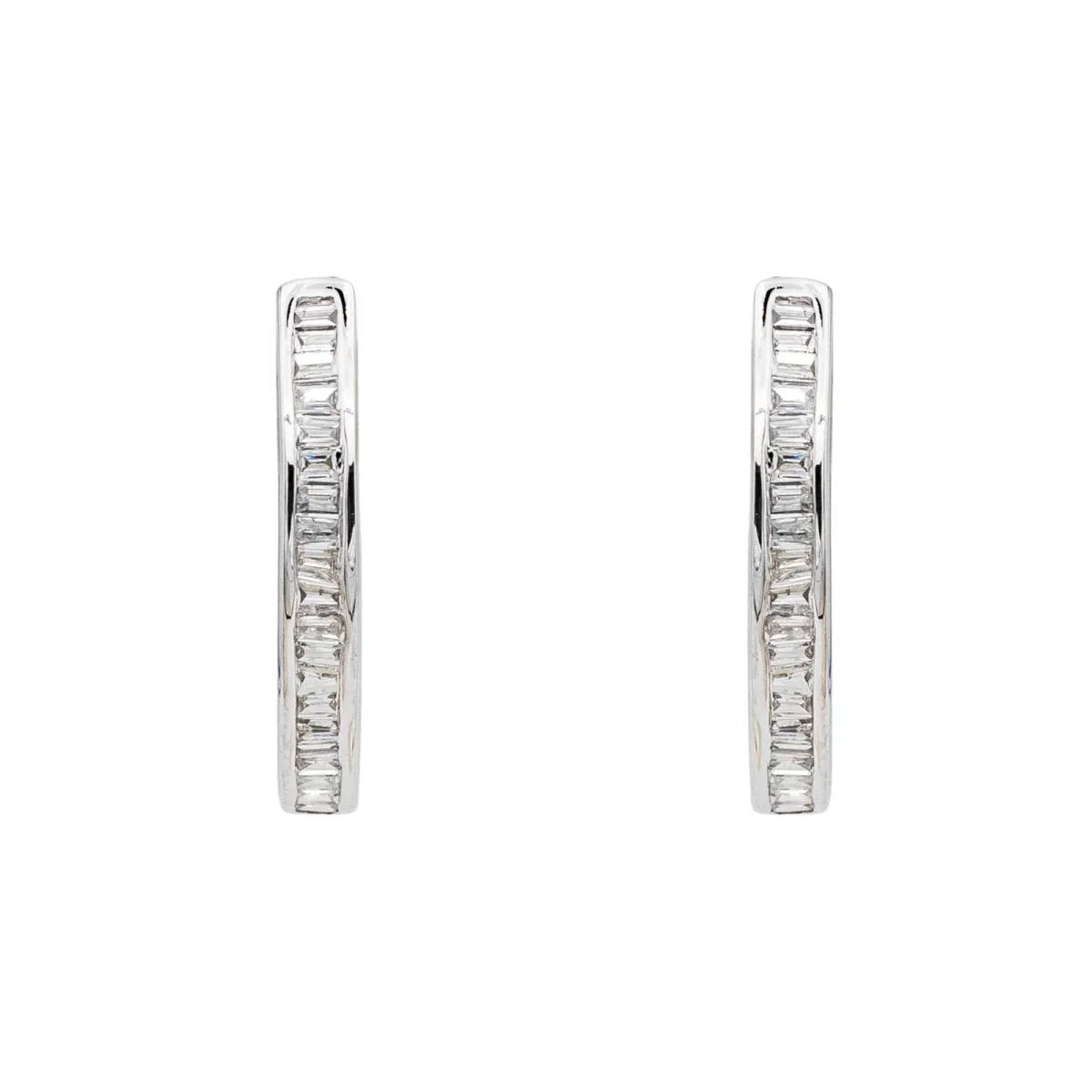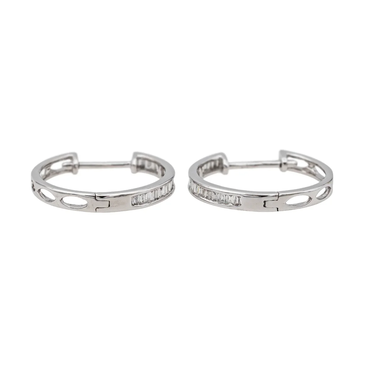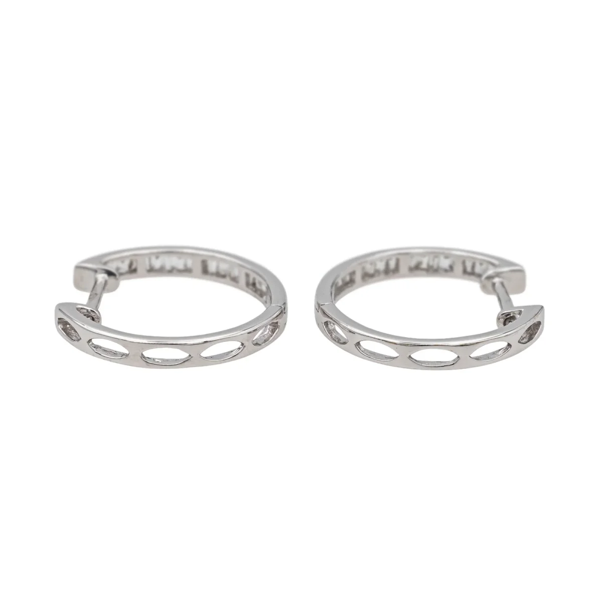 Créoles en or blanc 750 millièmes (18 carats) testé, 40 diamants taille brillant, environ G-SI, d’un poids total d’environ 0,20 ct, (chaque diamant d’un poids d’environ 0,005 ct), diamètre : 1,55 cm, largeur : 0,20 cm, poids total : 1,72 g, excellent état