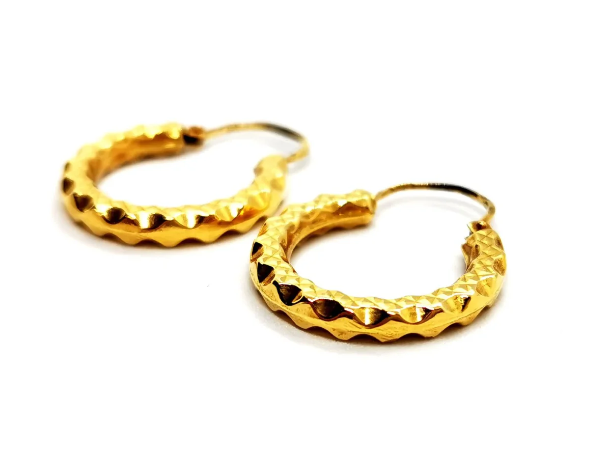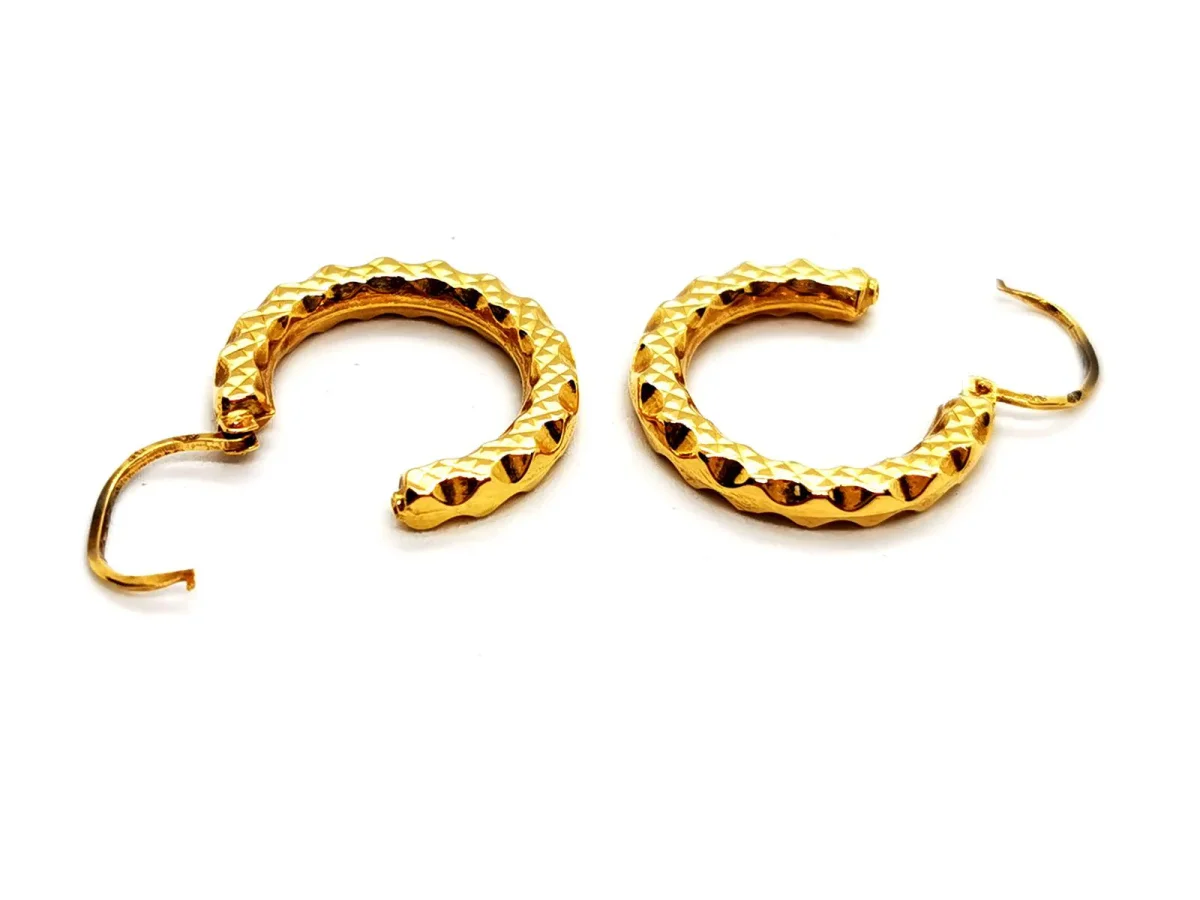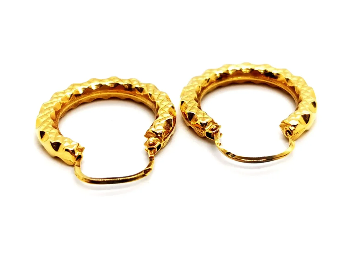 Boucles d’oreilles créoles, en or jaune 750 millièmes (18 carats), motif géométrique, diamètre: 2,07 cm, largeur: 0,28 cm, poids total: 2,10 g, poinçon tête d’aigle, excellent état.