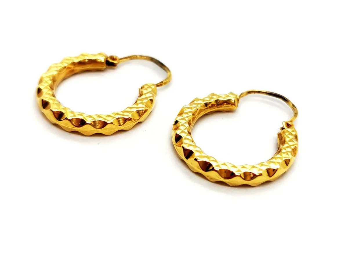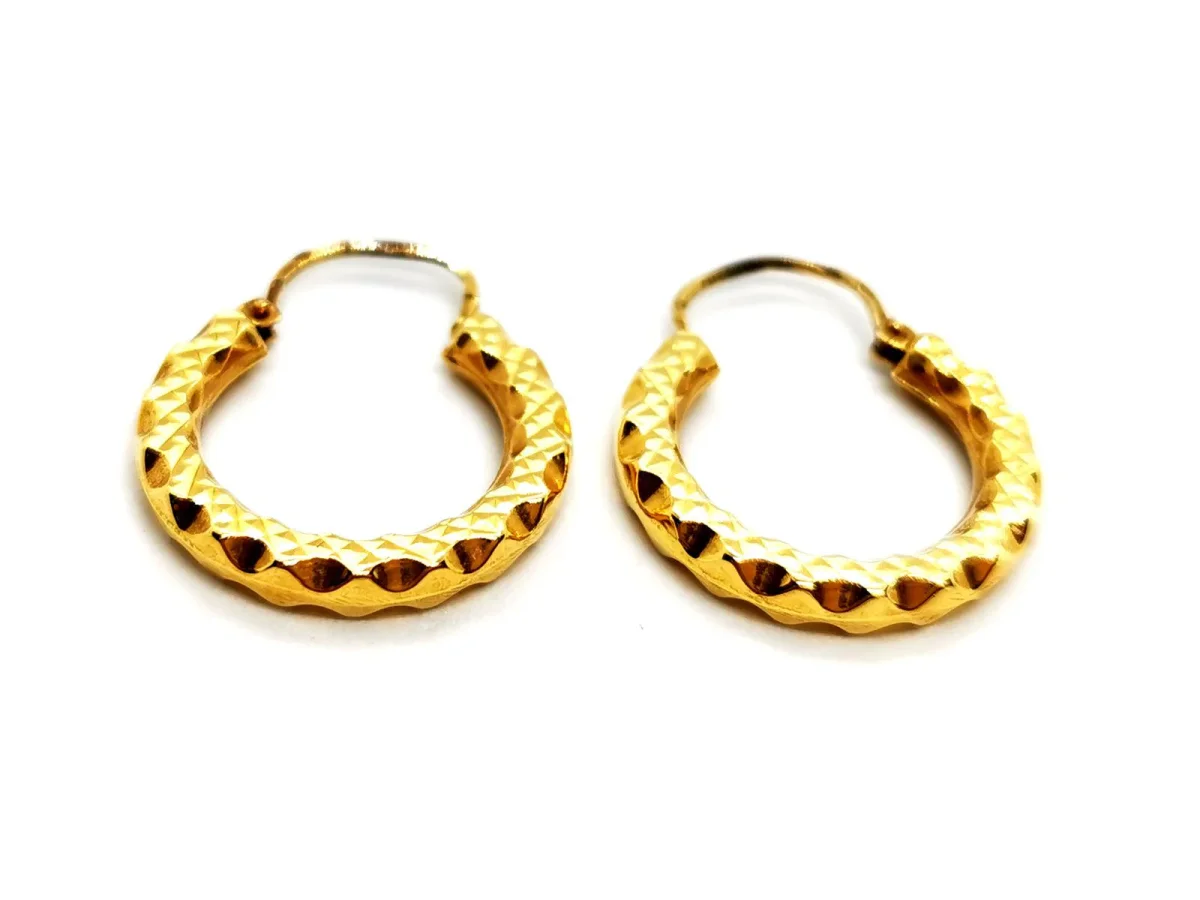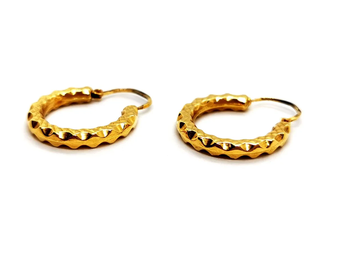 Boucles d’oreilles créoles, en or jaune 750 millièmes (18 carats), motif géométrique, diamètre: 2,07 cm, largeur: 0,28 cm, poids total: 2,10 g, poinçon tête d’aigle, excellent état.