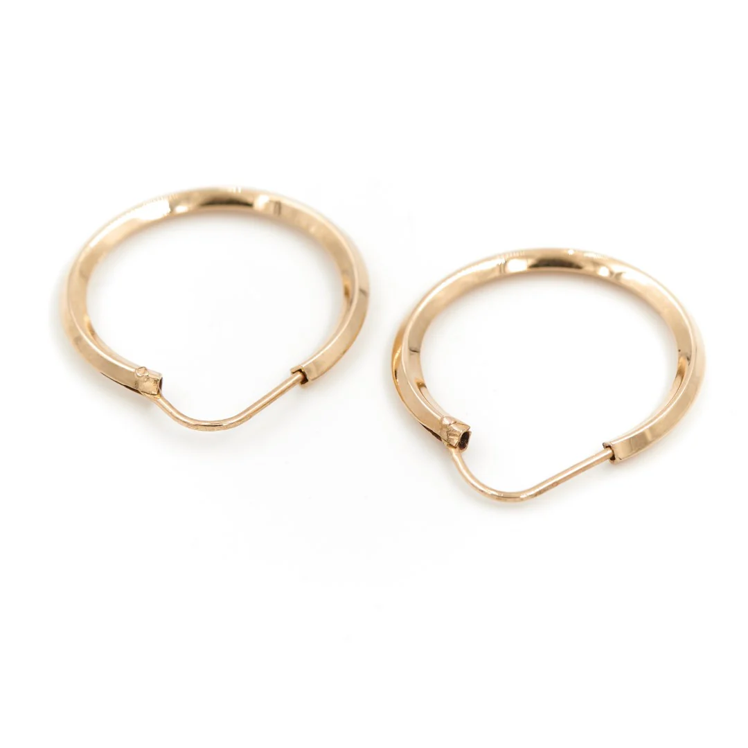 Boucles d’oreilles créoles en or jaune 750 millièmes (18 carats) testé, à fil triangulaire, diamètre: 2,37 cm, largeur: 0,2 cm, poids total: 2,83 g, excellent état