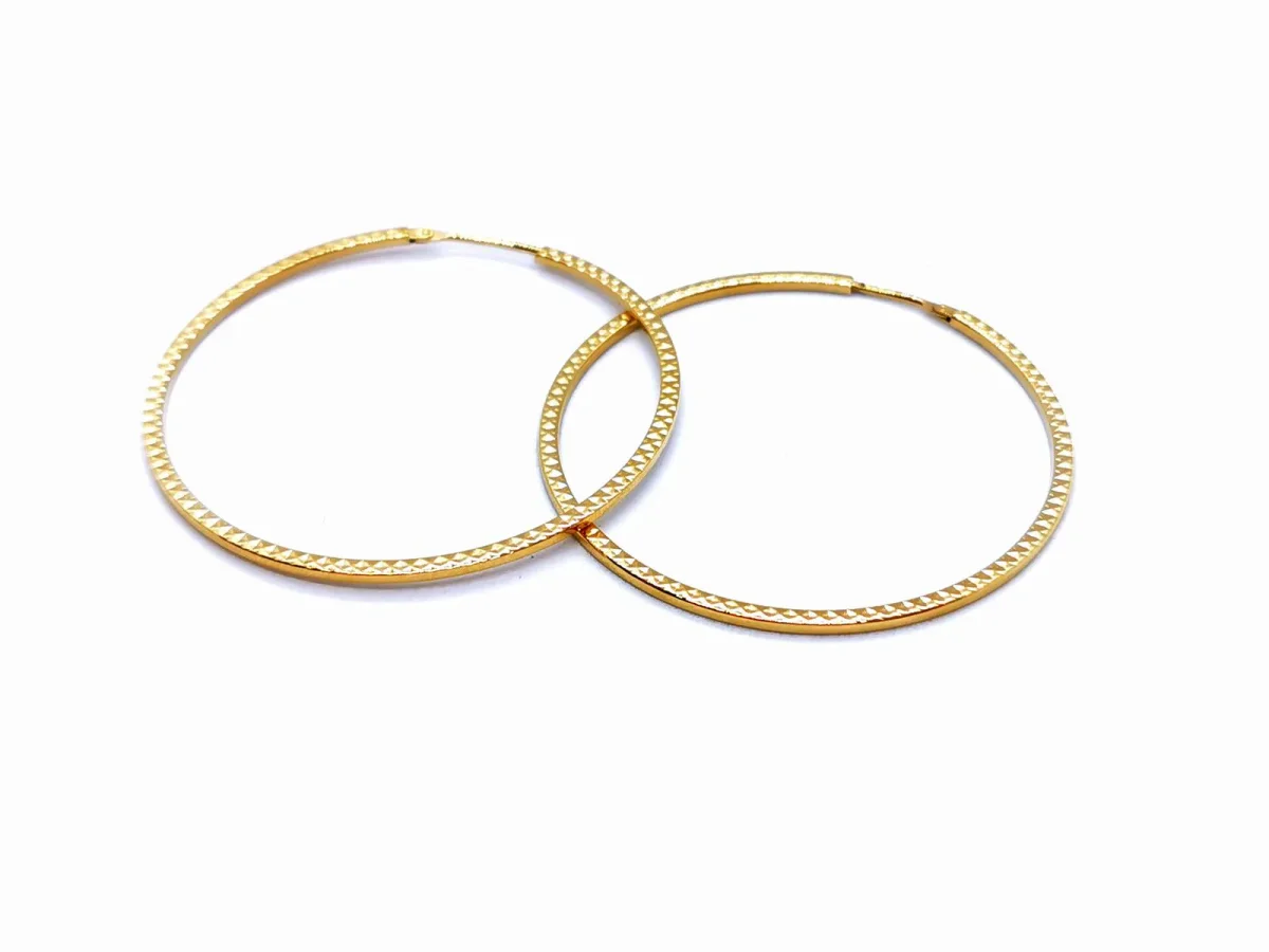 Créoles en or jaune 750 millièmes (18 carats) testé, fil carré travaillé, diamètre: 4 cm, largeur: 0,15 cm, épaisseur: 0,1 cm, poids total: 1,83 g, excellent état