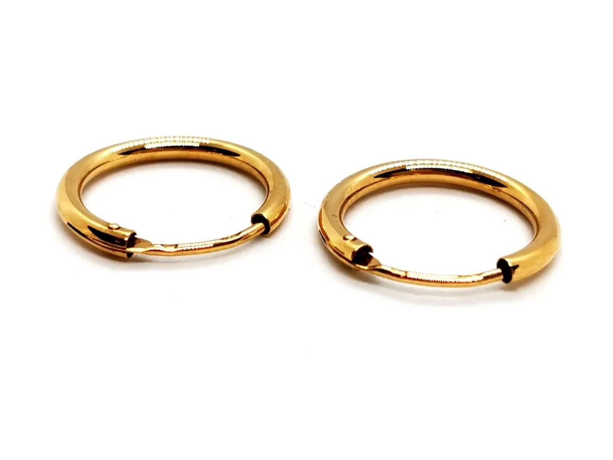 Petites créoles, en or jaune 750 millièmes (18 carats), fil rond, diamètre: 1,79 cm, largeur: 0,19 cm, poids total: 1,30 g, poinçon tête d’aigle, excellent état.