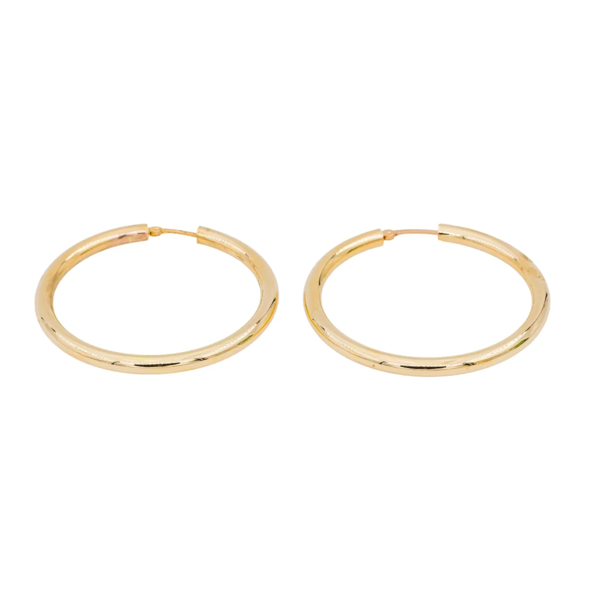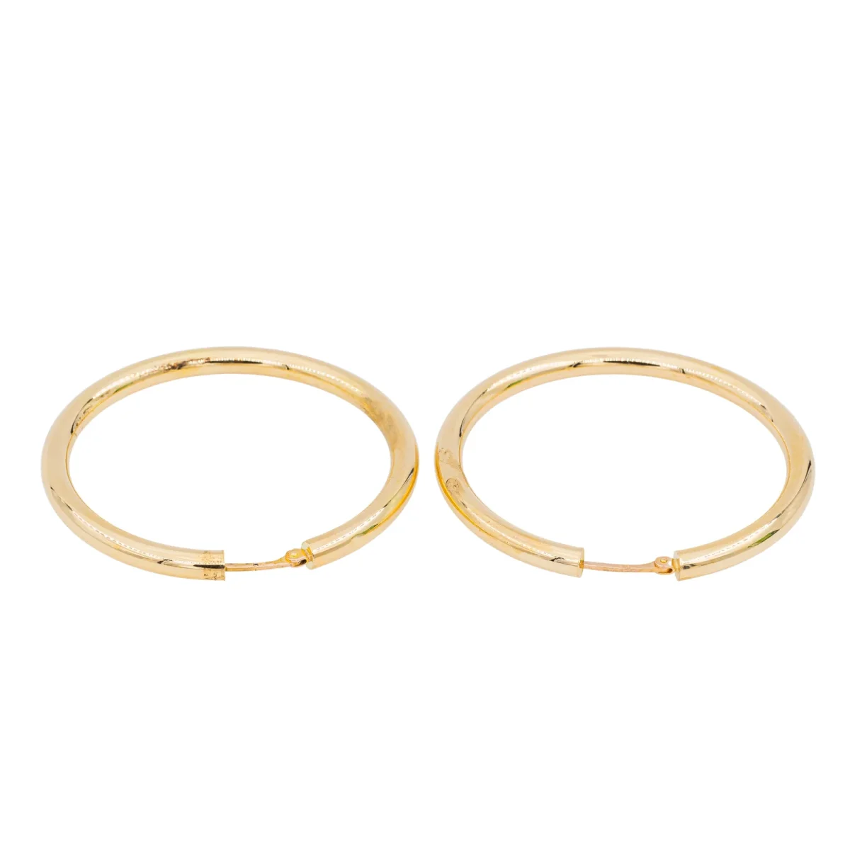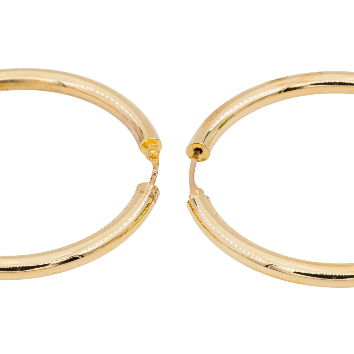 Créoles en or jaune 750 millièmes (18 carats), fil rond, diamètre: 3,97 cm, largeur: 0,30 cm, poids total: 2,95 g, poinçon tête d’aigle, excellent état