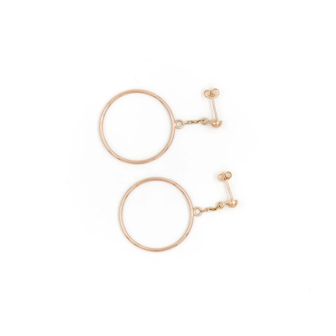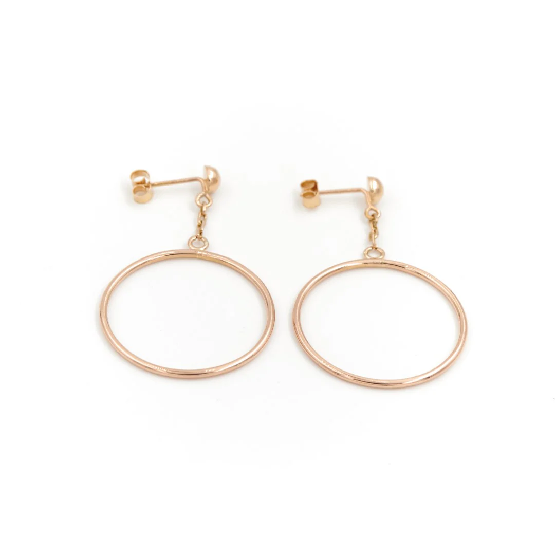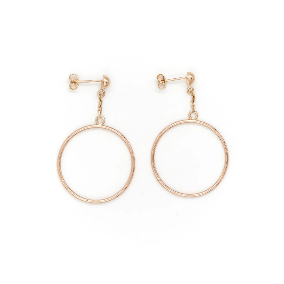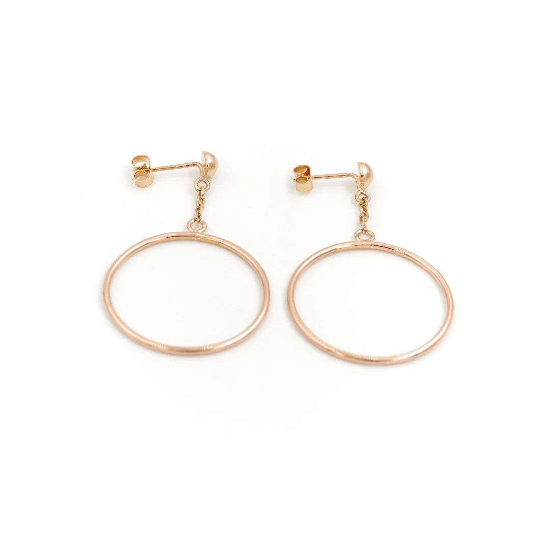 Boucles d’oreilles en or jaune 750 millièmes (18 carats), créoles pendantes fil rond, longueur : 2,9 cm, largeur : 4,8 cm, épaisseur du fil : 0,12 cm poids total : 5,58 g, testé, excellent état.