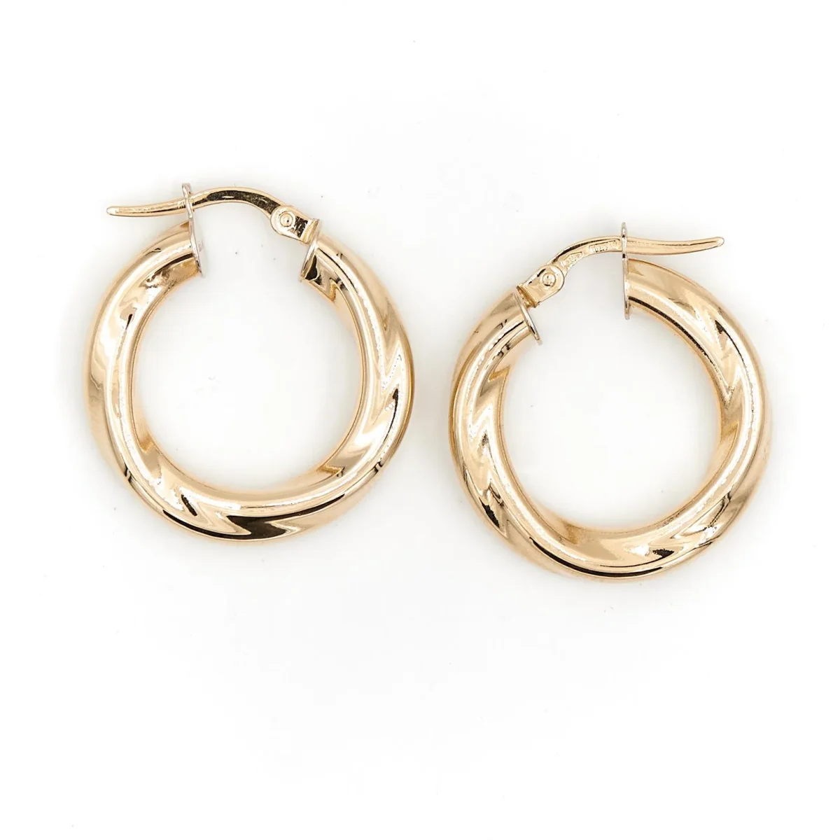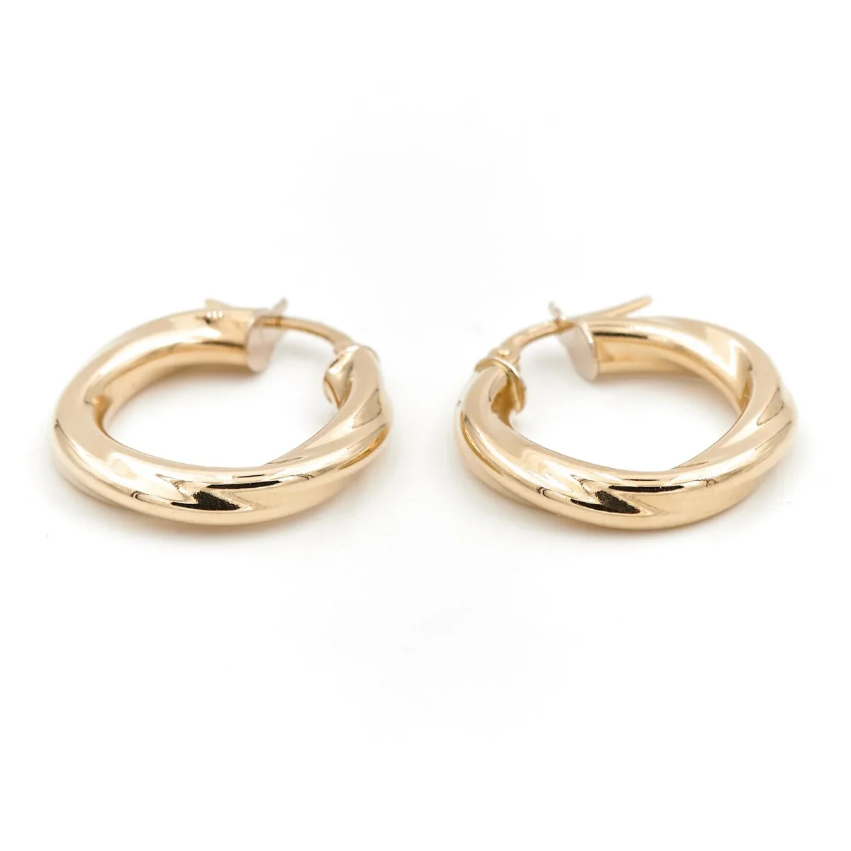 Boucles d’oreilles en or jaune 750 millièmes testé(18 carats), créoles travaillées, longueur: 2,16, largeur: 0,35, poids total: 2,33 g, excellent état.