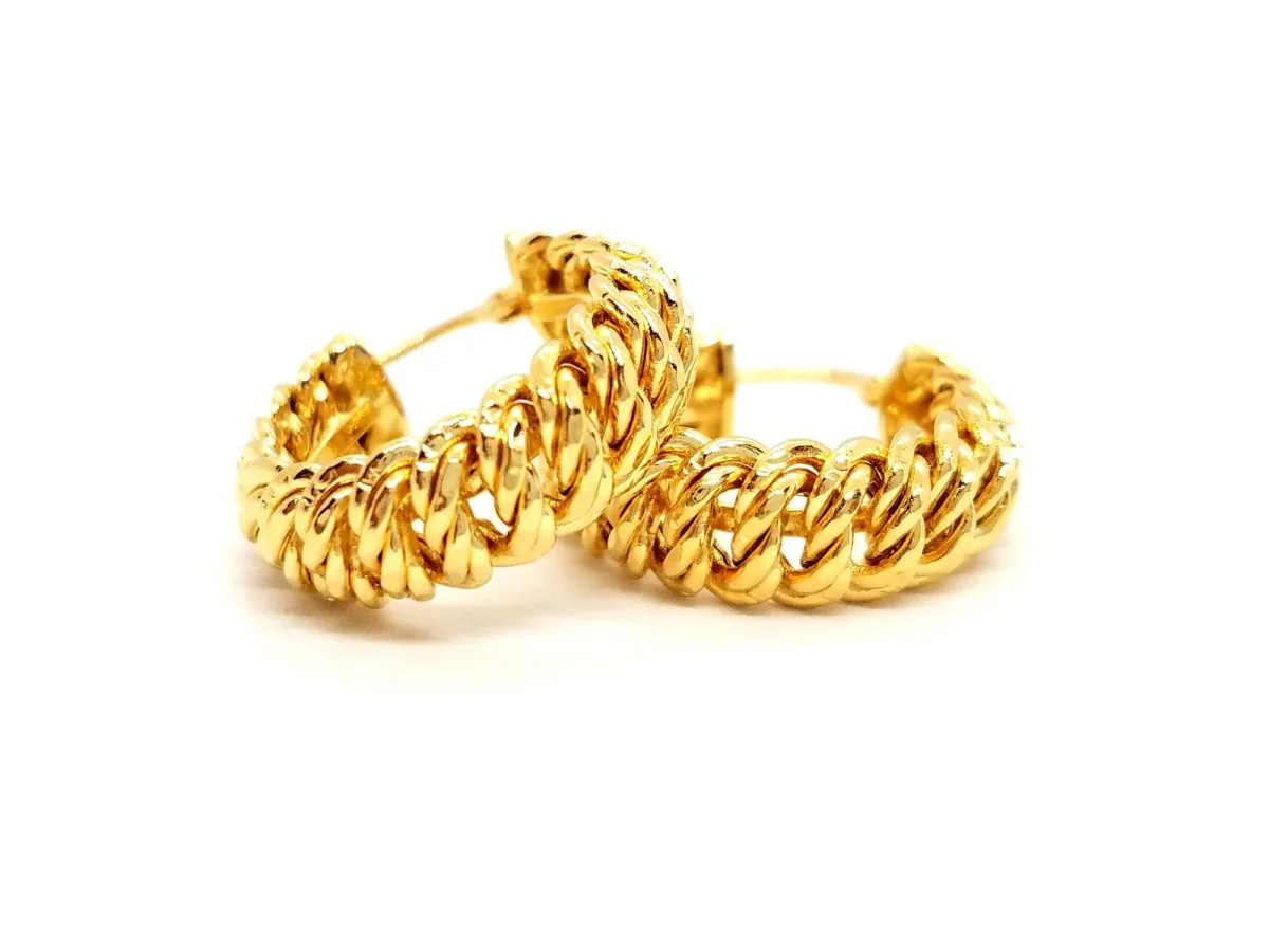 Boucles d’oreilles en or jaune 750 millièmes (18 carats) testé, créoles travaillées, dimensions: 2 cm x 0,66 cm, poids total: 5,30 g, excellent état
