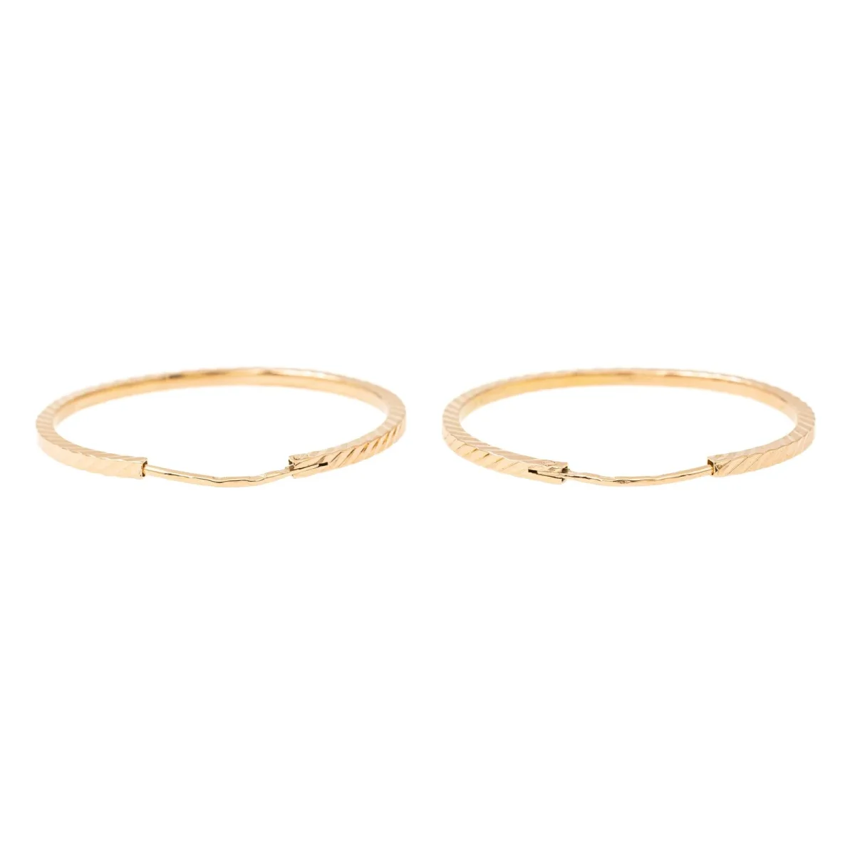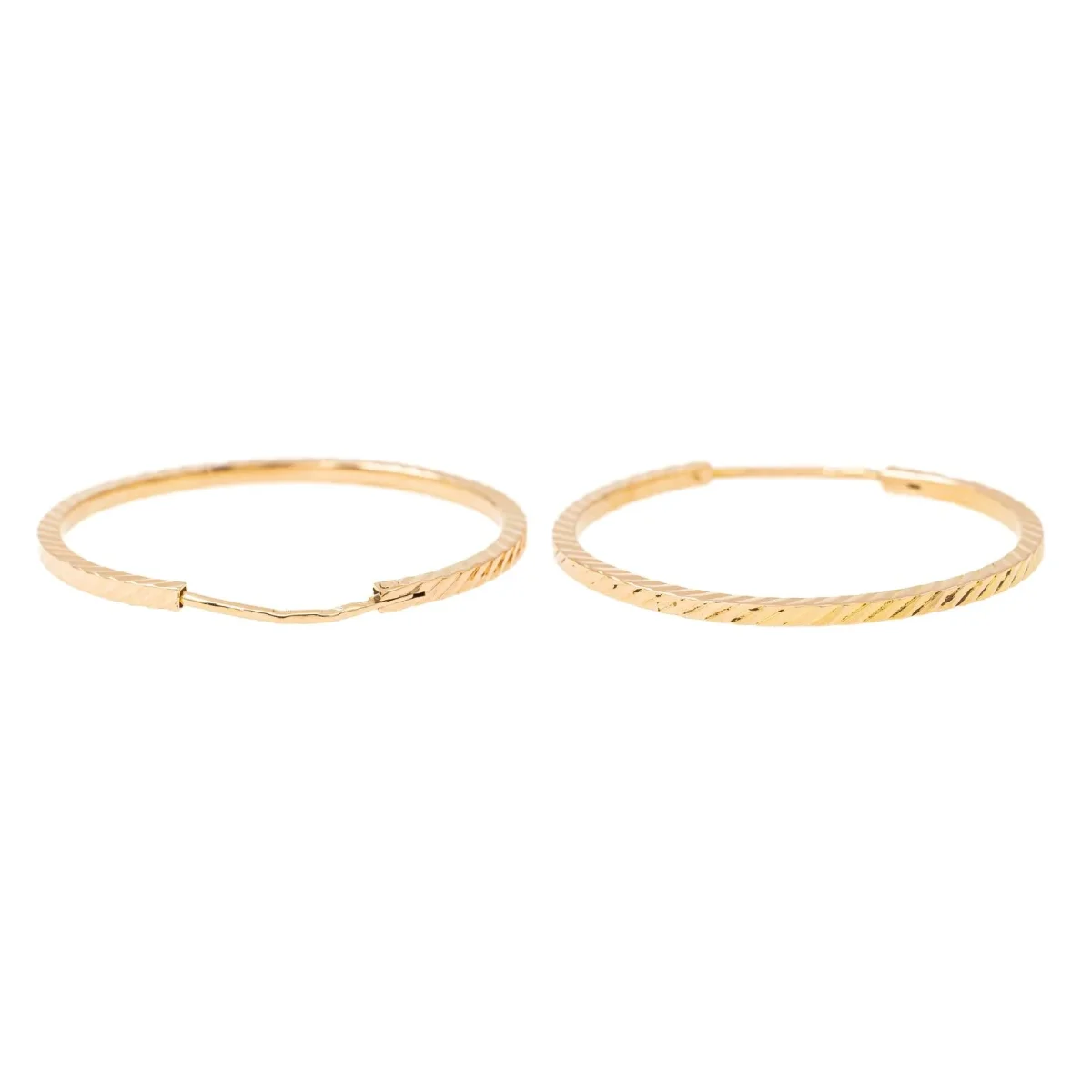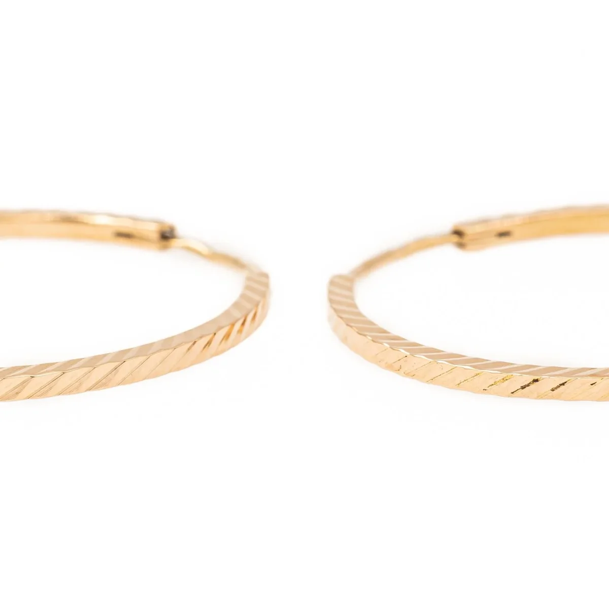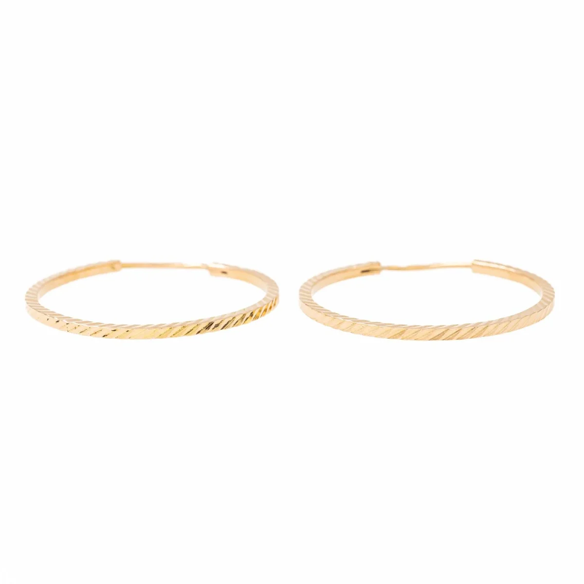 Créoles en or jaune 750 millièmes (18 carats) testé, fil carré travaillé, diamètre: 3,12 cm, largeur: 0,14 cm, poids total: 2,62 g, excellent état