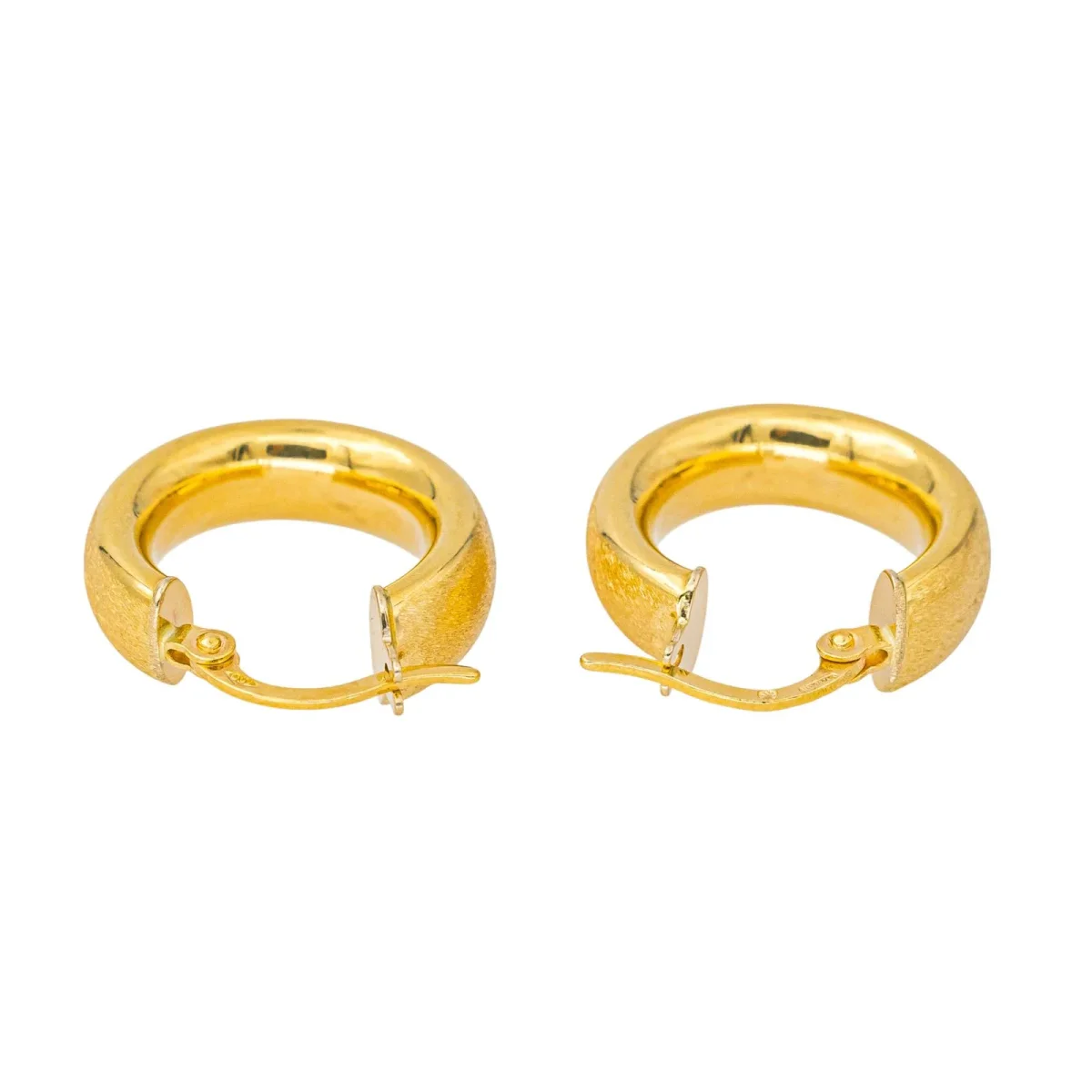 Créoles en or jaune 750 millièmes (18 carats) testé, diamètre : 1,65 cm, largeur : 0,48 cm, poids total : 2,60 g, excellent état