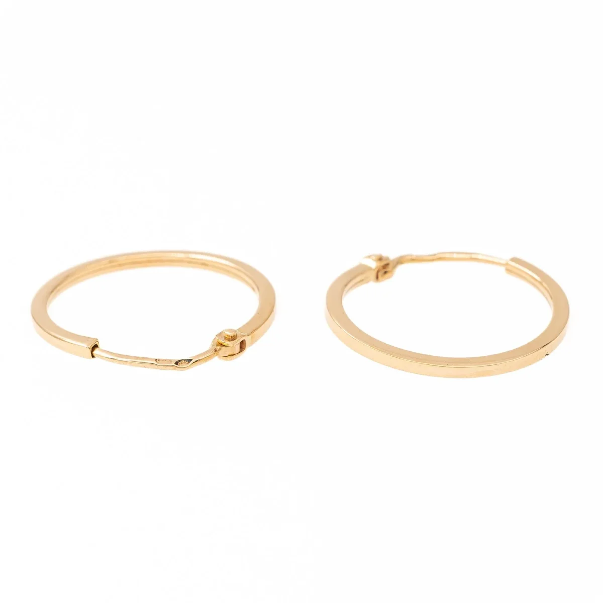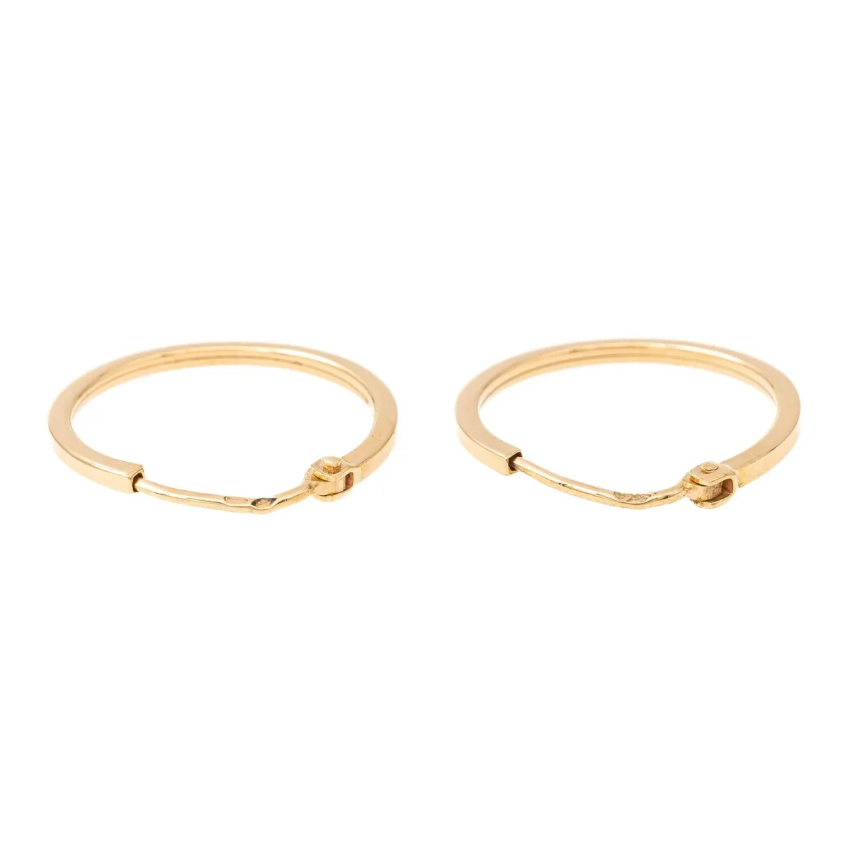 Créoles en or jaune 750 millièmes (18 carats), diamètre: 1,7 cm, largeur: 0,1 cm, poids total: 1,01 g, poinçon tête d’aigle, excellent état