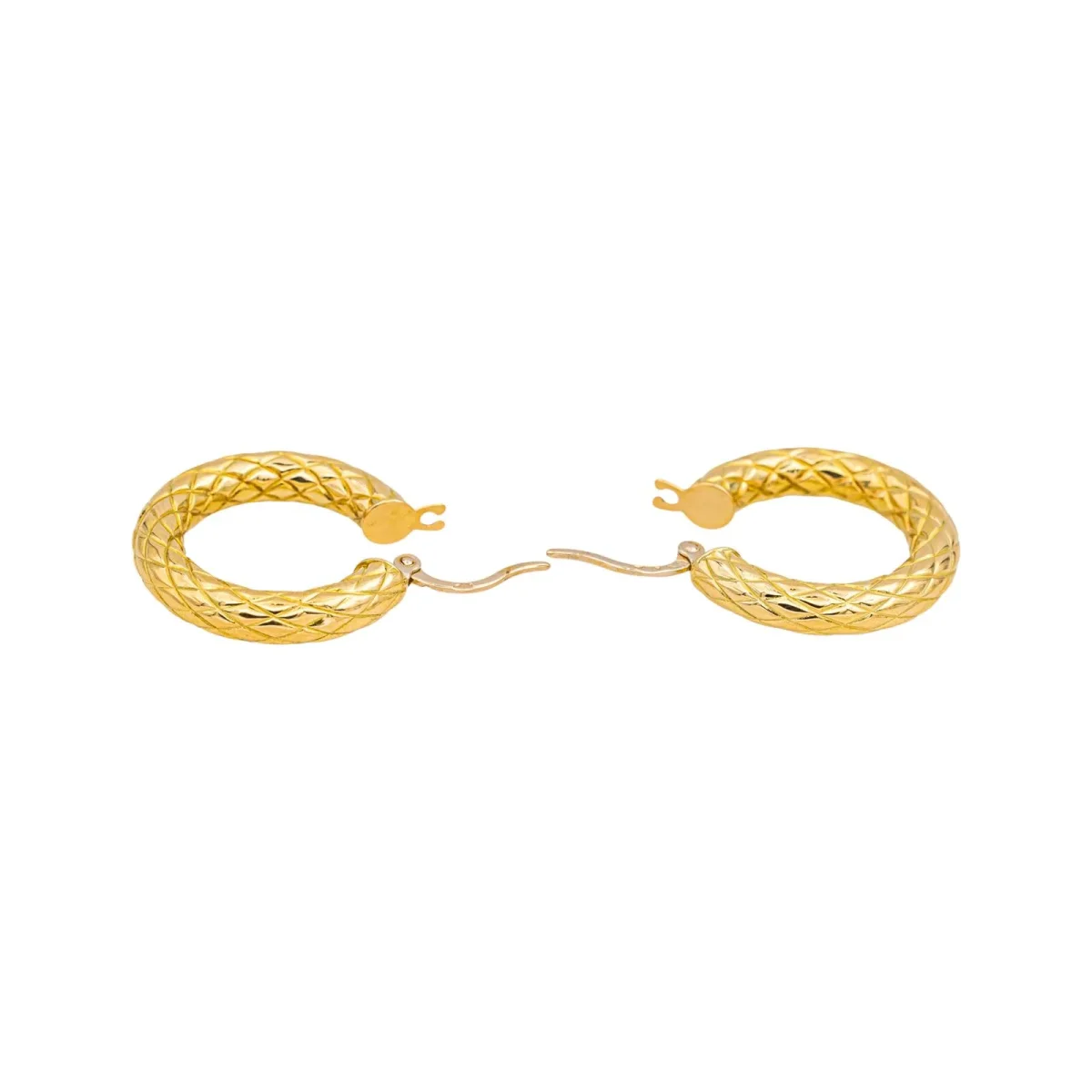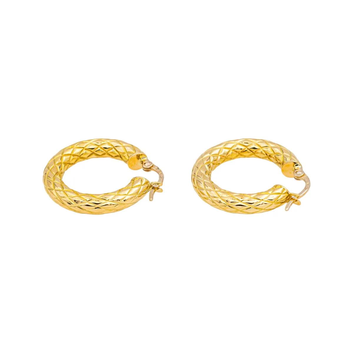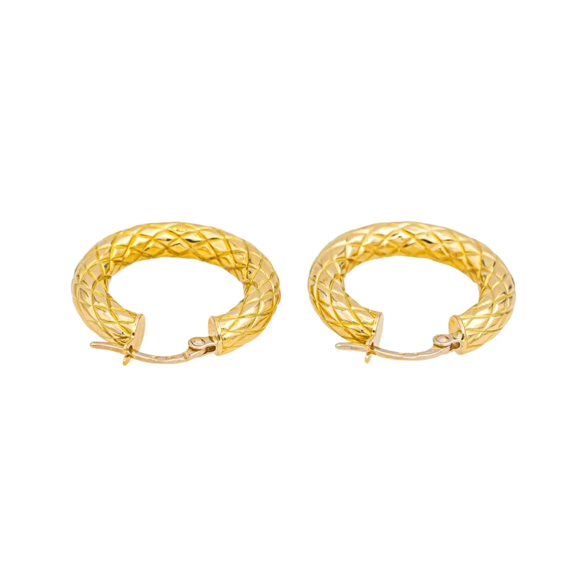 Créoles en or jaune 750 millièmes (18 carats), diamètre : 2,27 cm, largeur : 0,38 cm, poids total : 3,35 g, poinçon tête d’aigle, excellent état