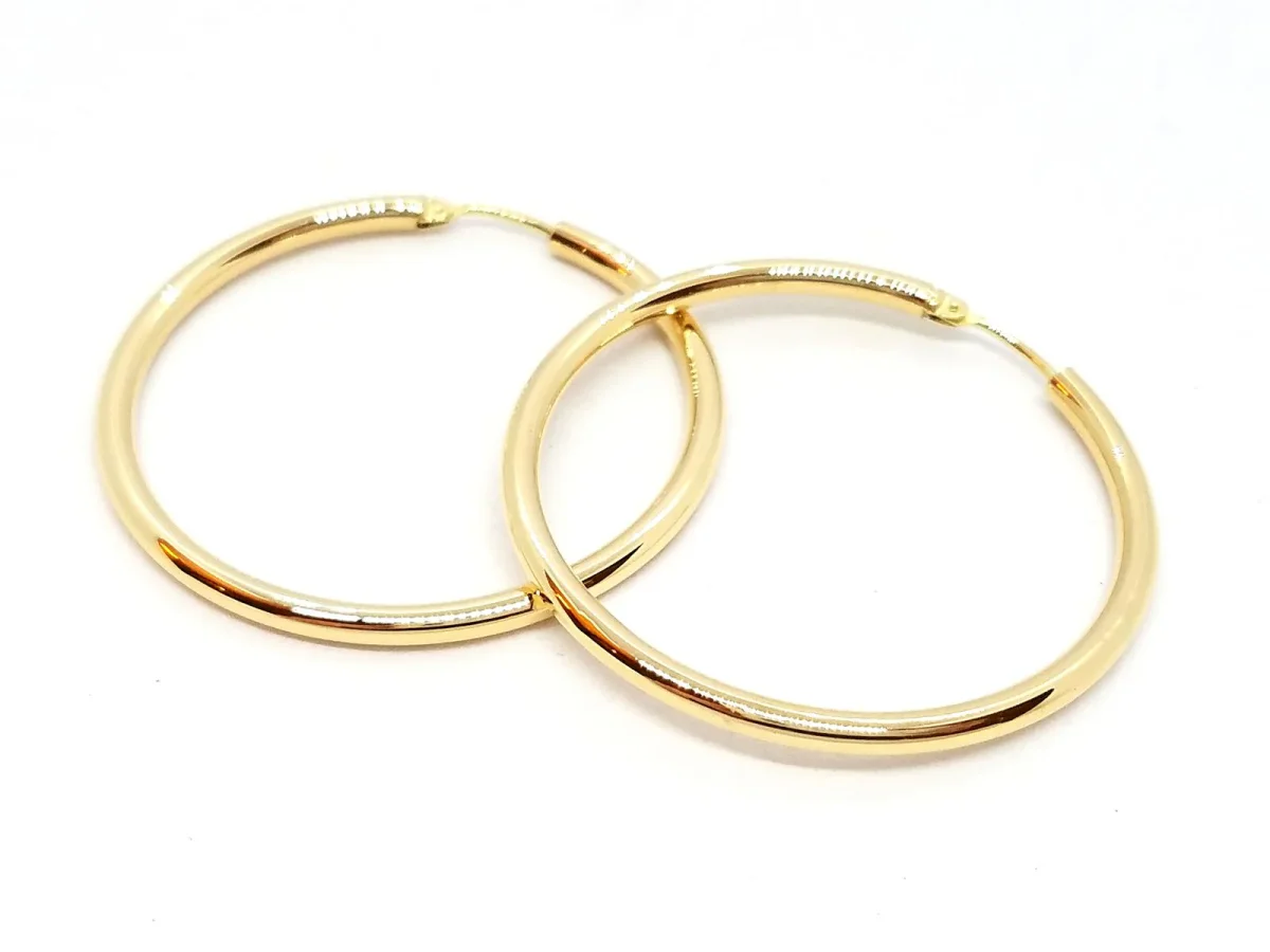 Boucles d’oreilles créoles en or jaune 750 millièmes (18 carats) testé, fil rond de diamètre: 0,23 cm, diamètre créoles: 3,96 cm, poids total: 2,69 g, excellent état