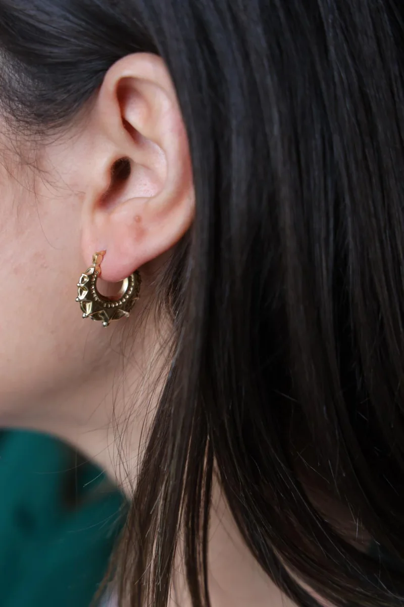 Créoles en or jaune 750 millièmes (18 carats), fil travaillé, diamètre: 1,92 cm, largeur: 0,35 cm, poids total: 2,34 g, poinçon tête d’aigle, excellent état