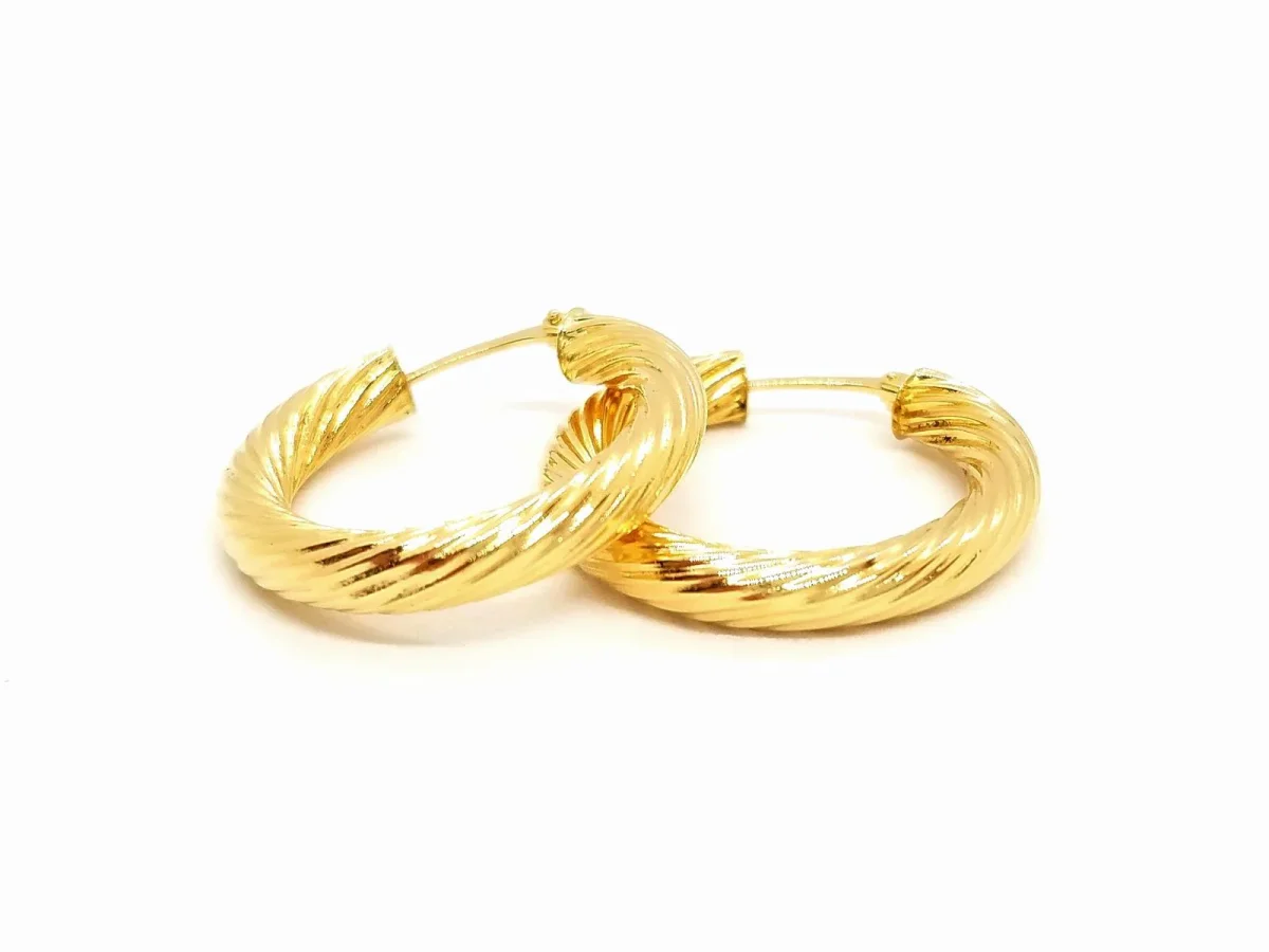 Boucles d’oreilles en or jaune 750 millièmes (18 carats), créoles fil rond torsadé, dimensions: 2,54 cm x 0,38 cm, poids total: 2,25 g, poinçon tête d’aigle, excellent état