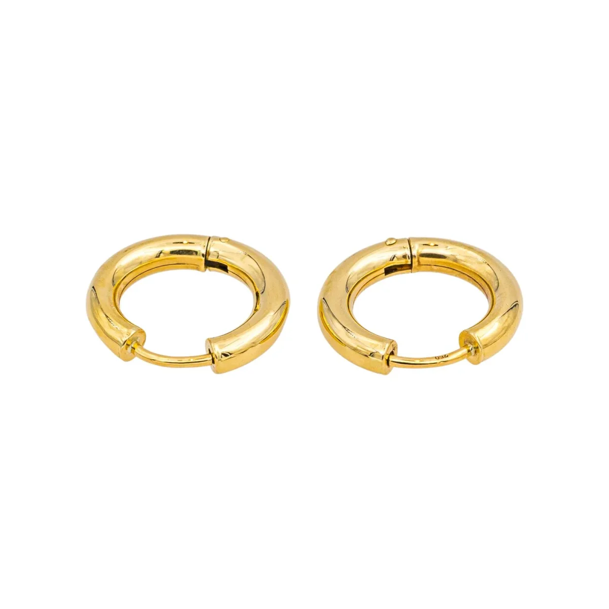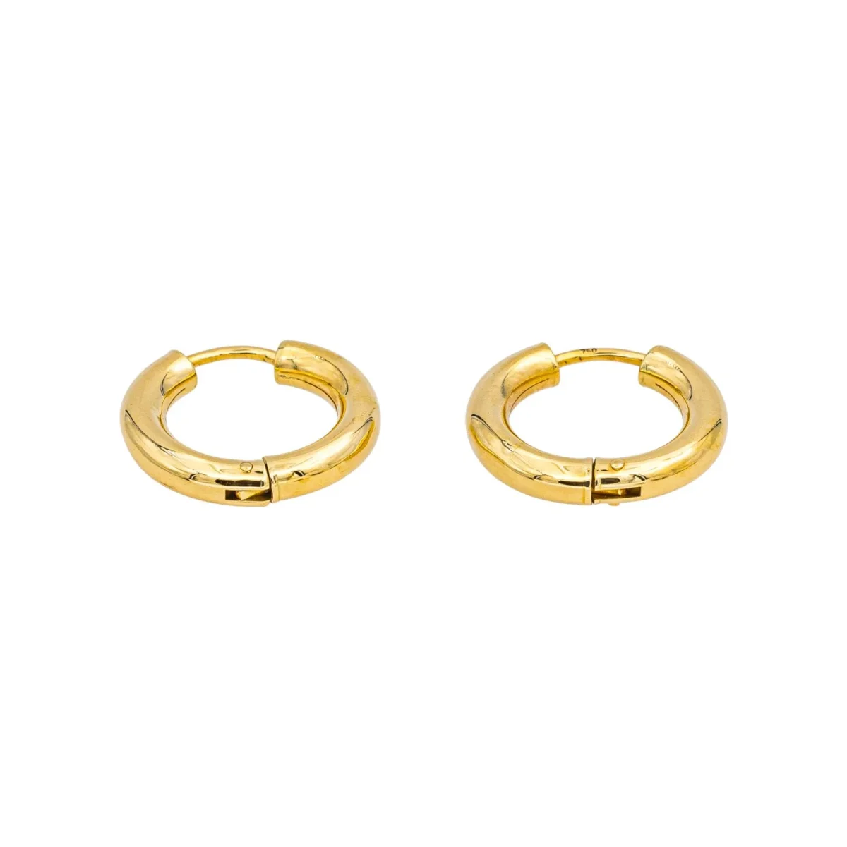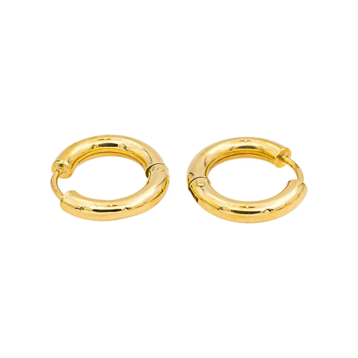 Créoles en or jaune 750 millièmes (18 carats) testé, fil rond, diamètre : 1,45 cm, largeur : 0,29 cm, poids total : 2,02 g, excellent état