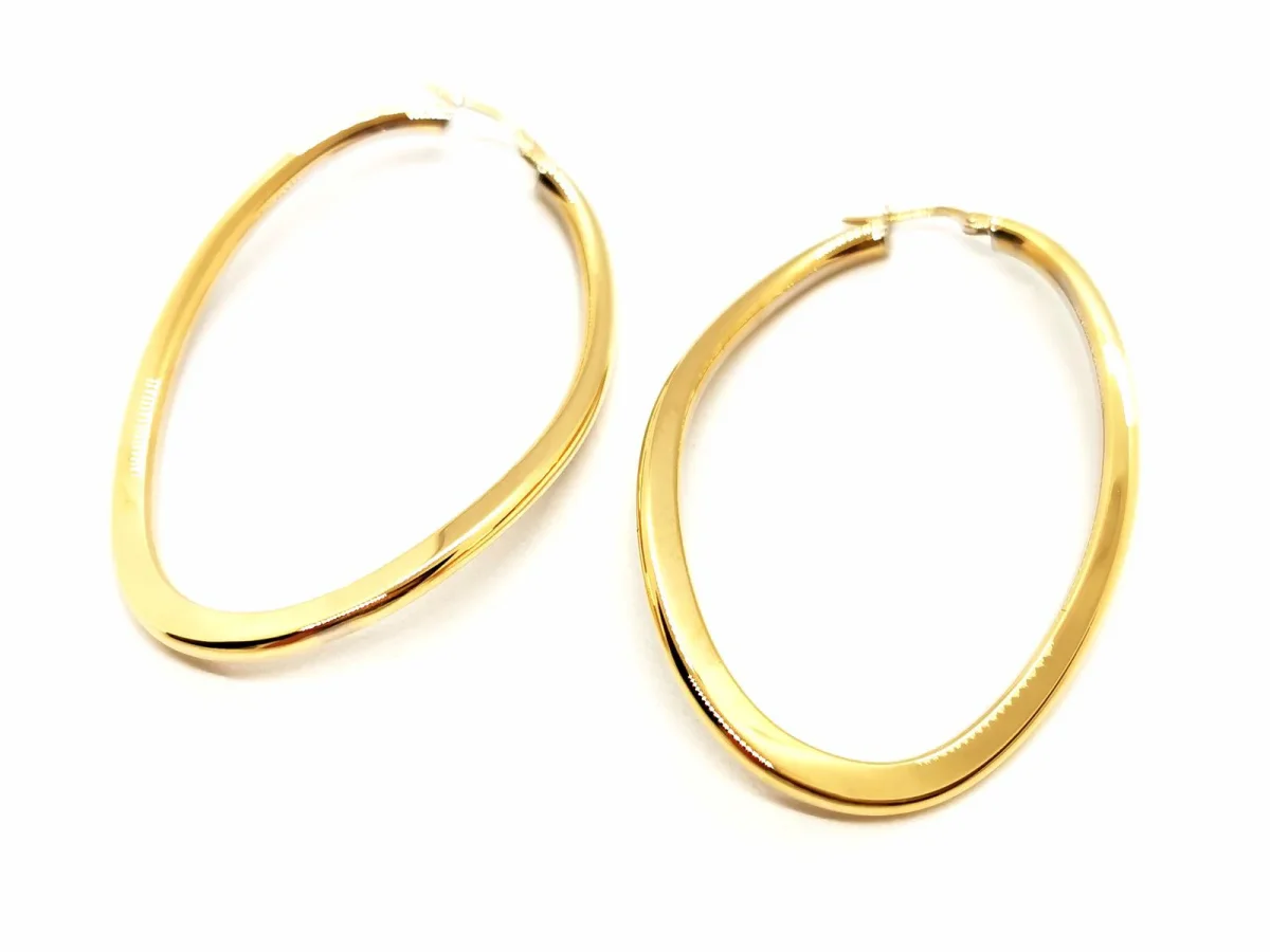 Boucles d’oreilles en or jaune 750 millièmes (18 carats) testé, grandes créoles, forme ovale en vague, dimensions: 5,83 x 3,68 cm, poids total: 4,98 g, excellent état