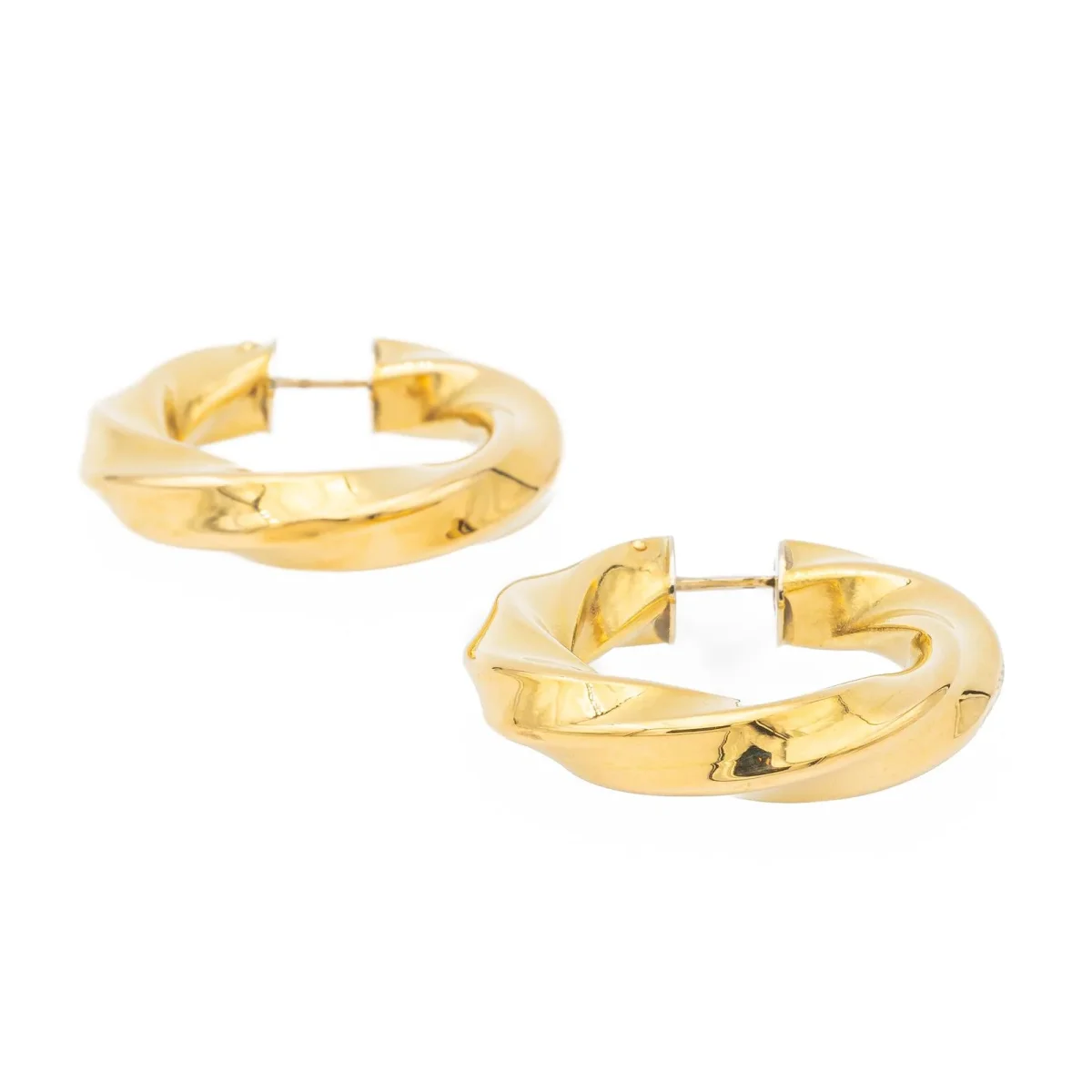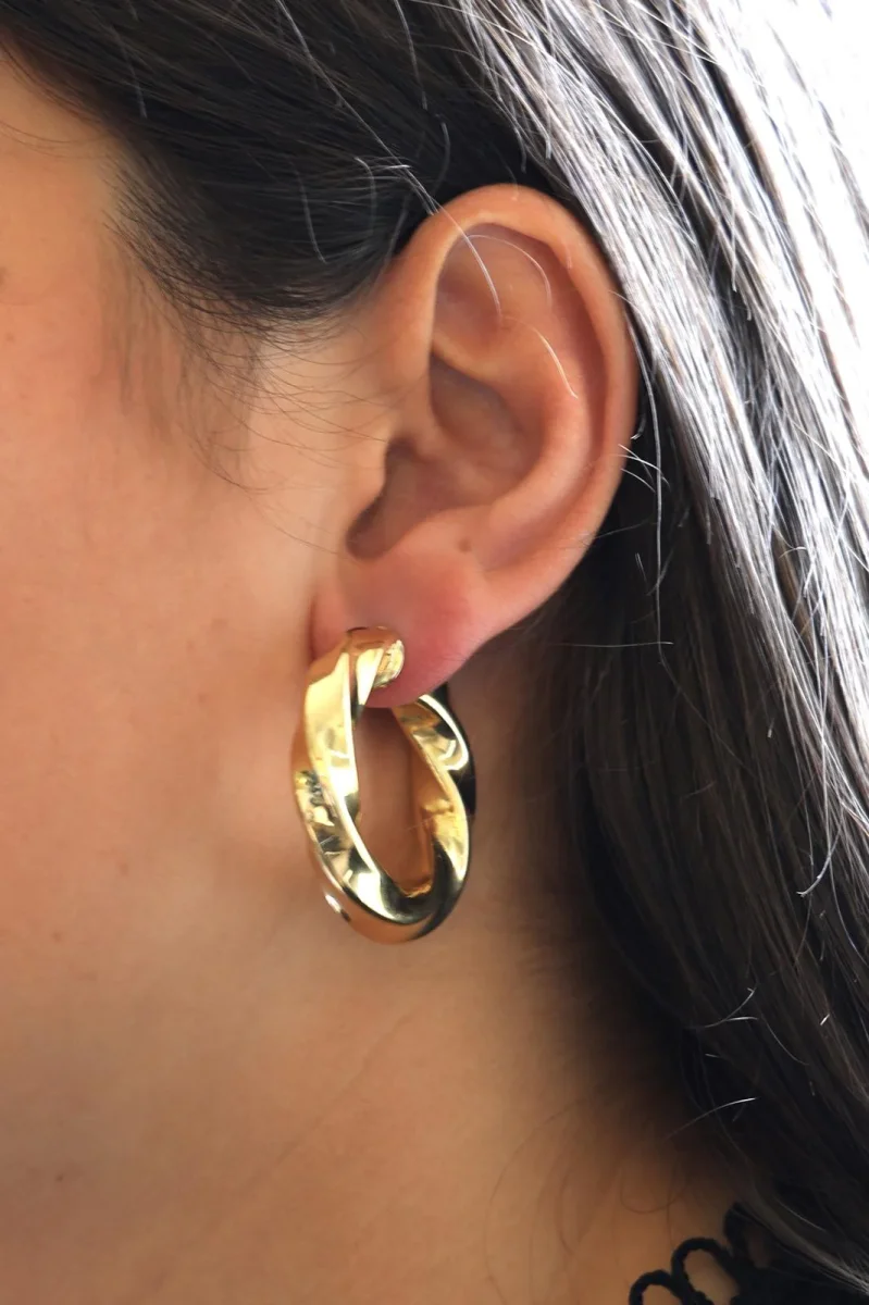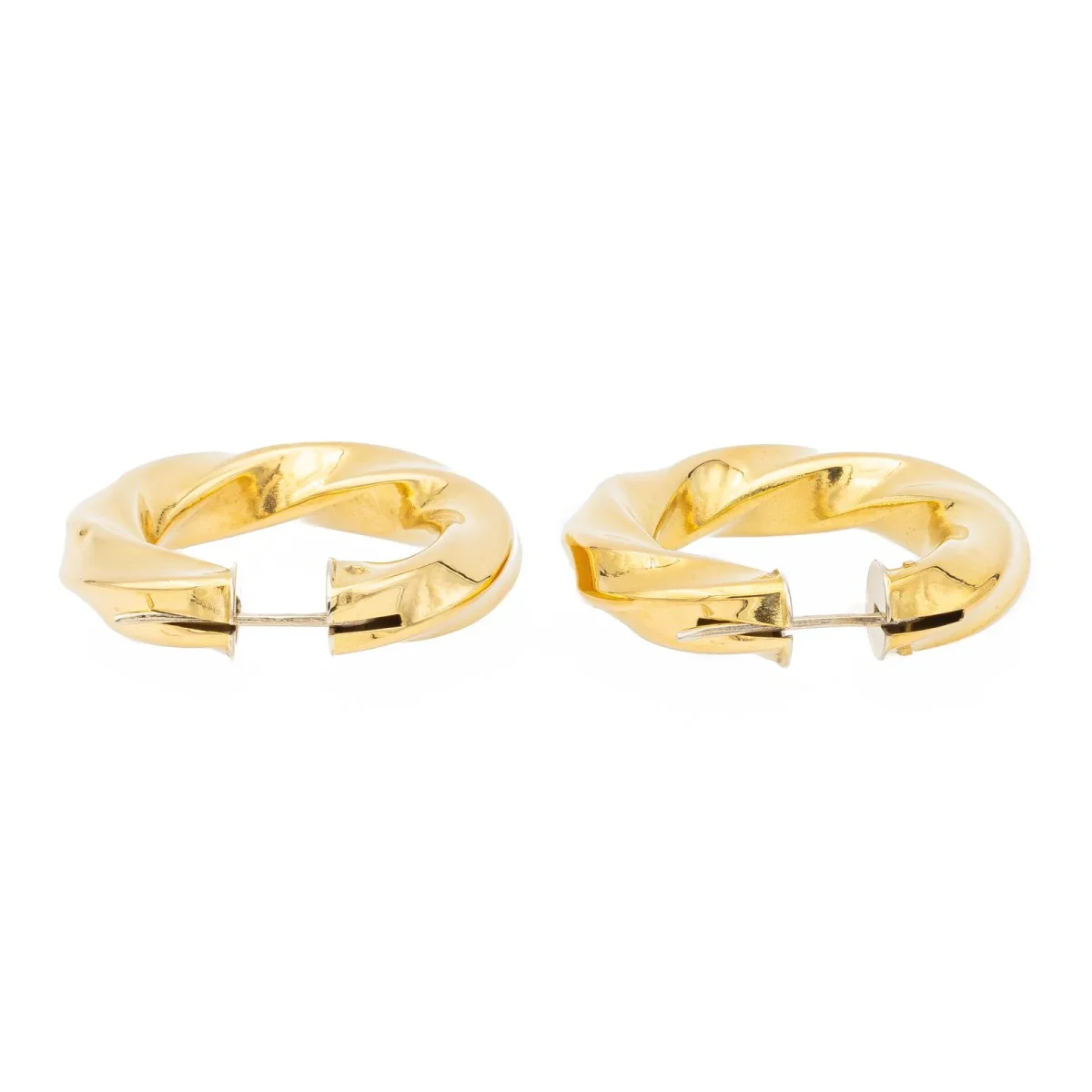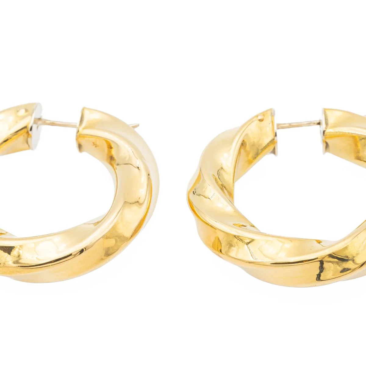 Paire de créoles d’oreilles, en or Jaune 750 millièmes (18 carats), motif torsadé, dimensions: 3,72 cm X 0,62 cm, poids total: 13,89g, poinçon tête d’aigle, excellent état.