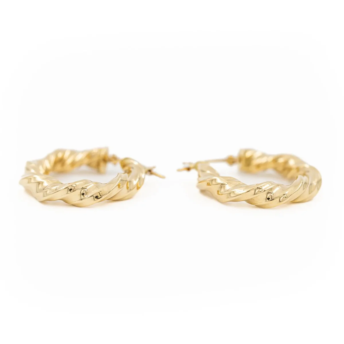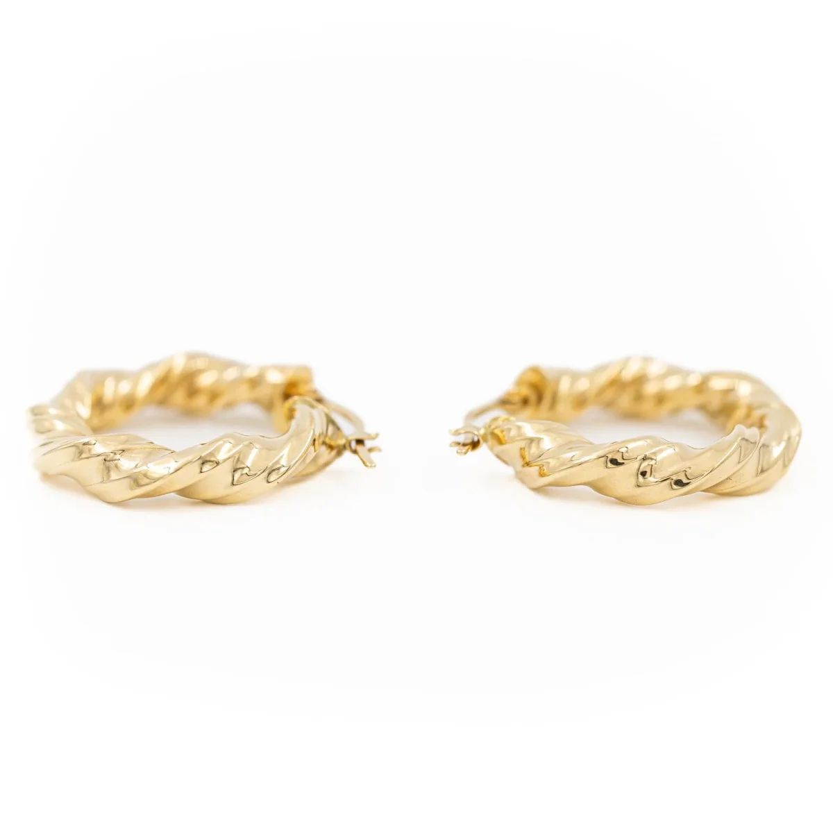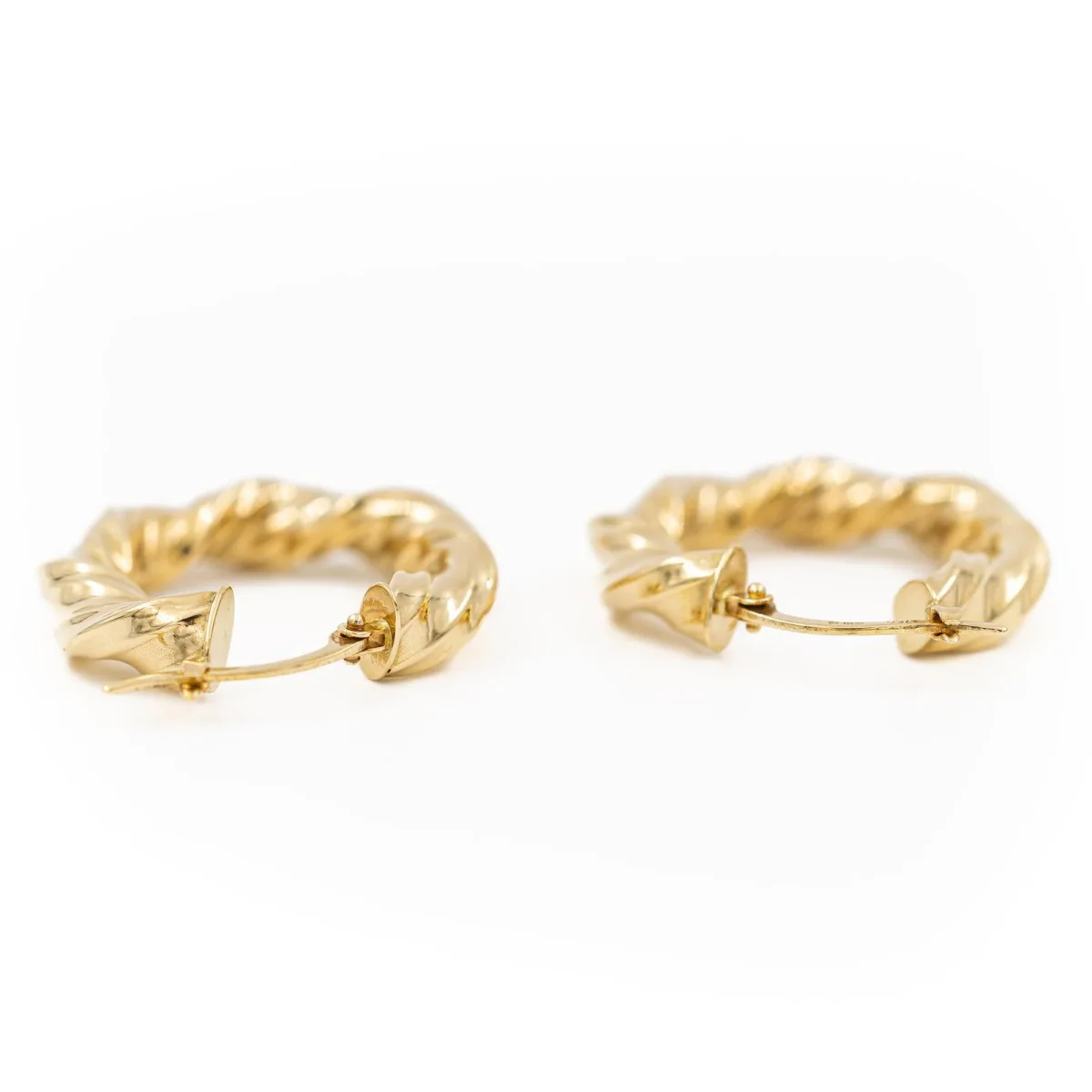 Créoles en or jaune 750 millièmes (18 carats) testé, fil torsadé, diamètre: 2,51 cm, largeur: 0,51 cm, poids total: 3,30 g, excellent état