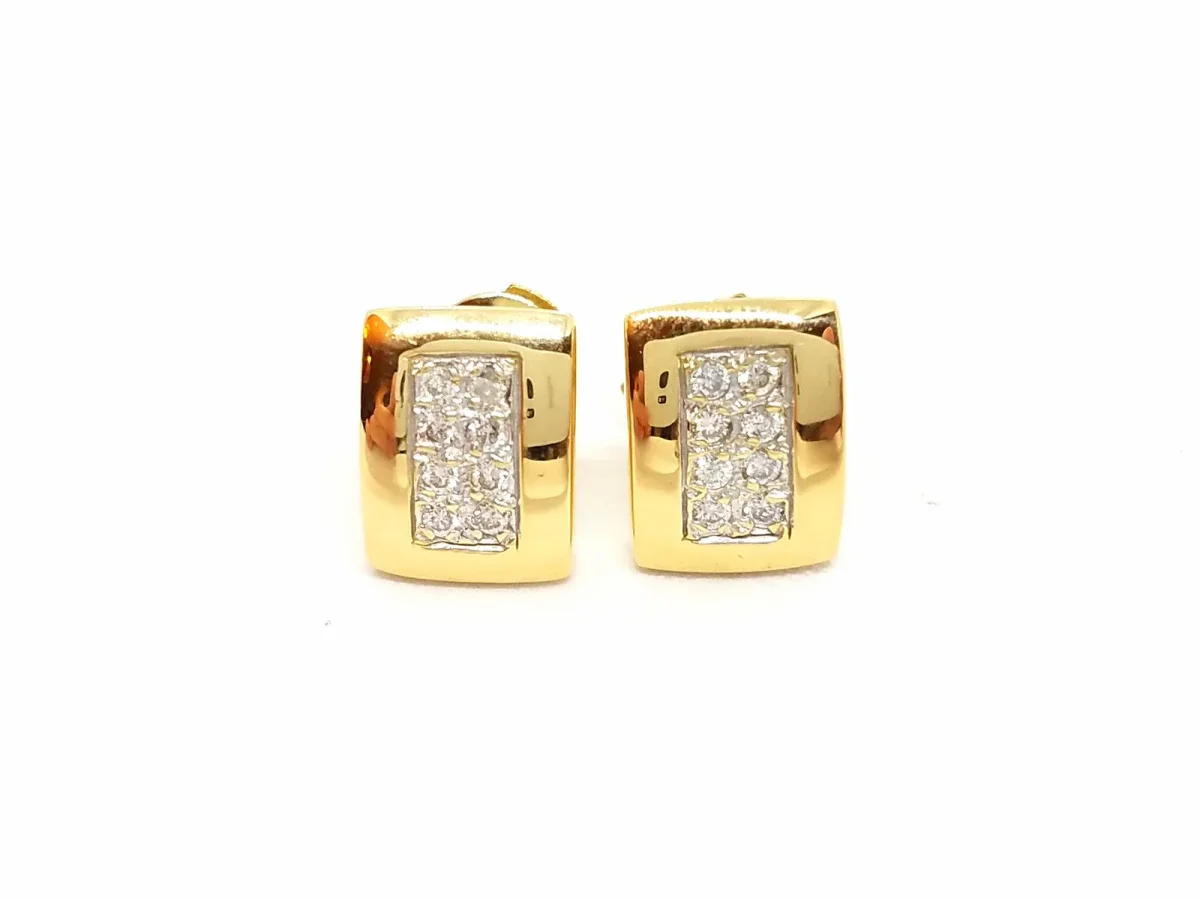 Boucles d’oreilles en or jaune 750 millièmes (18 carats) testé, serties de 16 diamants taille brillant G-H VSI pour un total d’environ 0,14 ct, dimensions: 1,07 cm x 0,87 cm, fermoir alpa, poids total: 3,59 g, excellent état