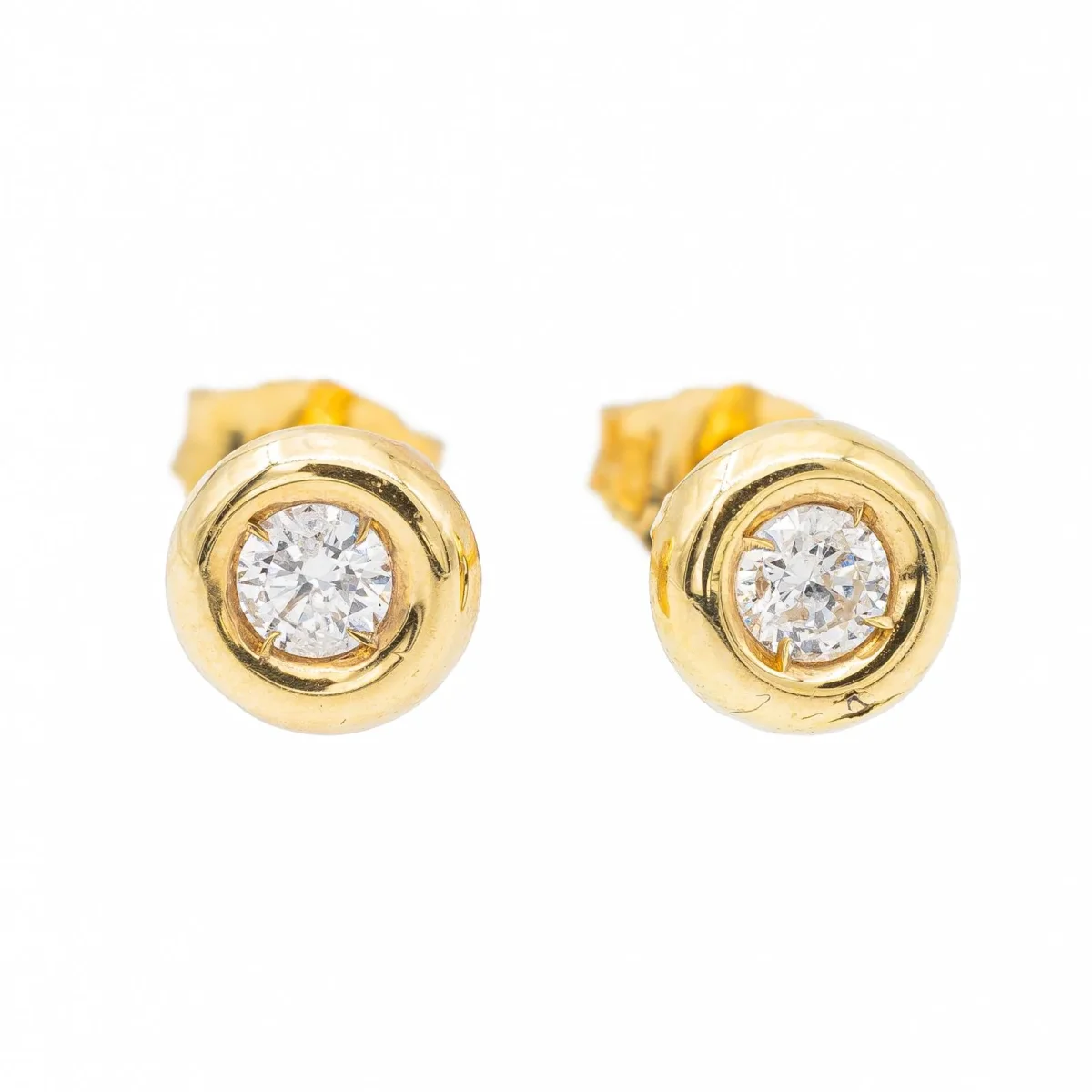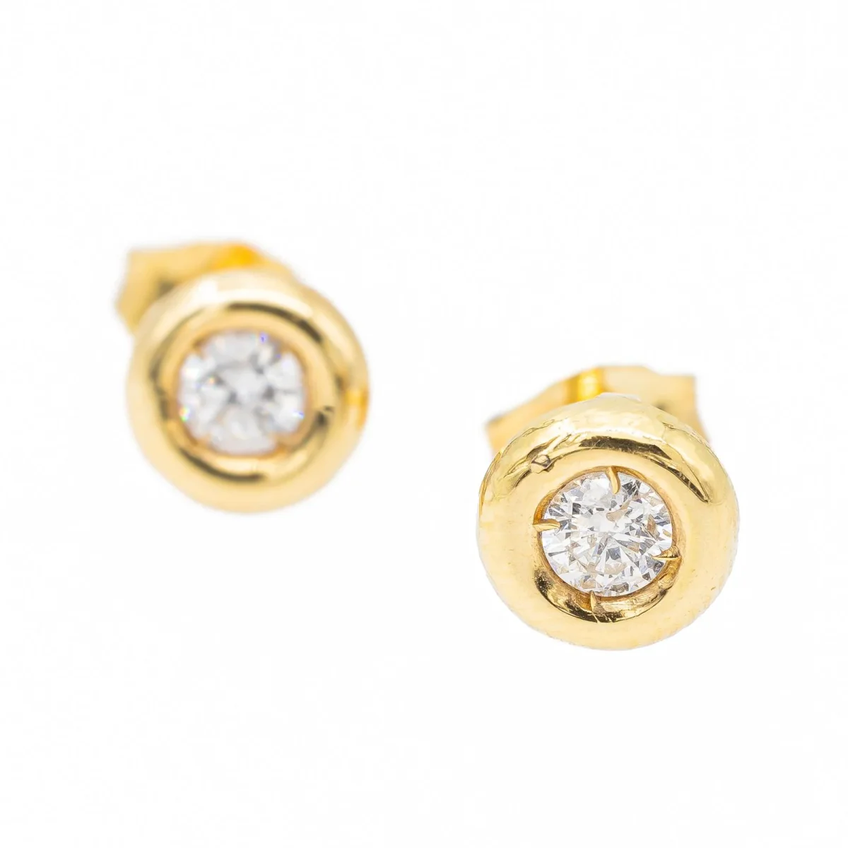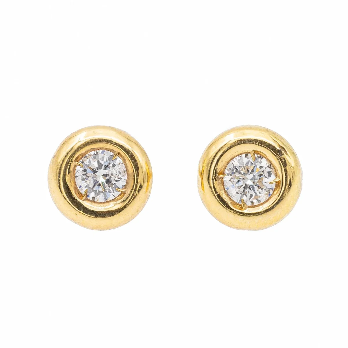 Boucles d’oreilles, en or jaune 750 millièmes (18 carats), serties de deux diamants taille brillant G-H V-SI, pour un total de 0,16 ct (2 fois 0,08 ct), diamètre 0,55 cm, poinçon tête d’aigle, poids total: 0,77 g, état neuf