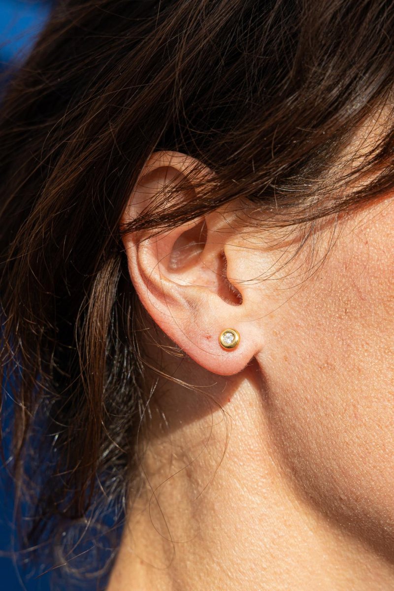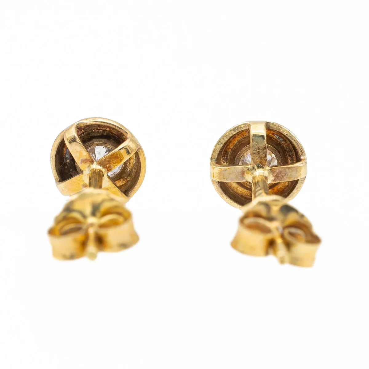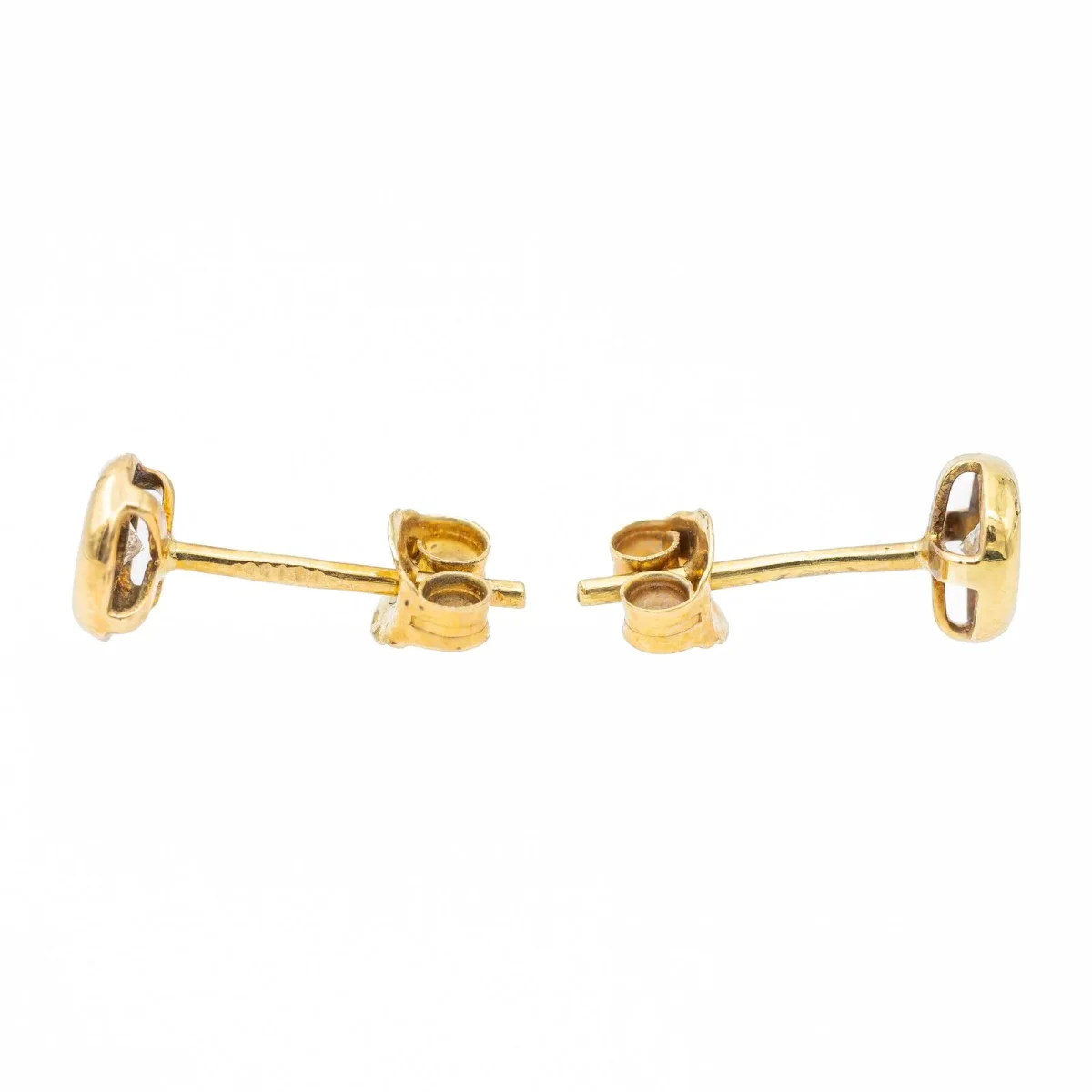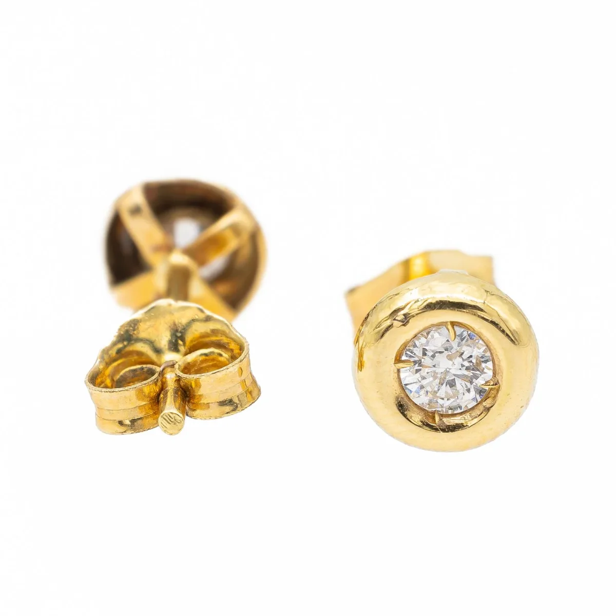 Boucles d’oreilles, en or jaune 750 millièmes (18 carats), serties de deux diamants taille brillant G-H V-SI, pour un total de 0,16 ct (2 fois 0,08 ct), diamètre 0,55 cm, poinçon tête d’aigle, poids total: 0,77 g, état neuf