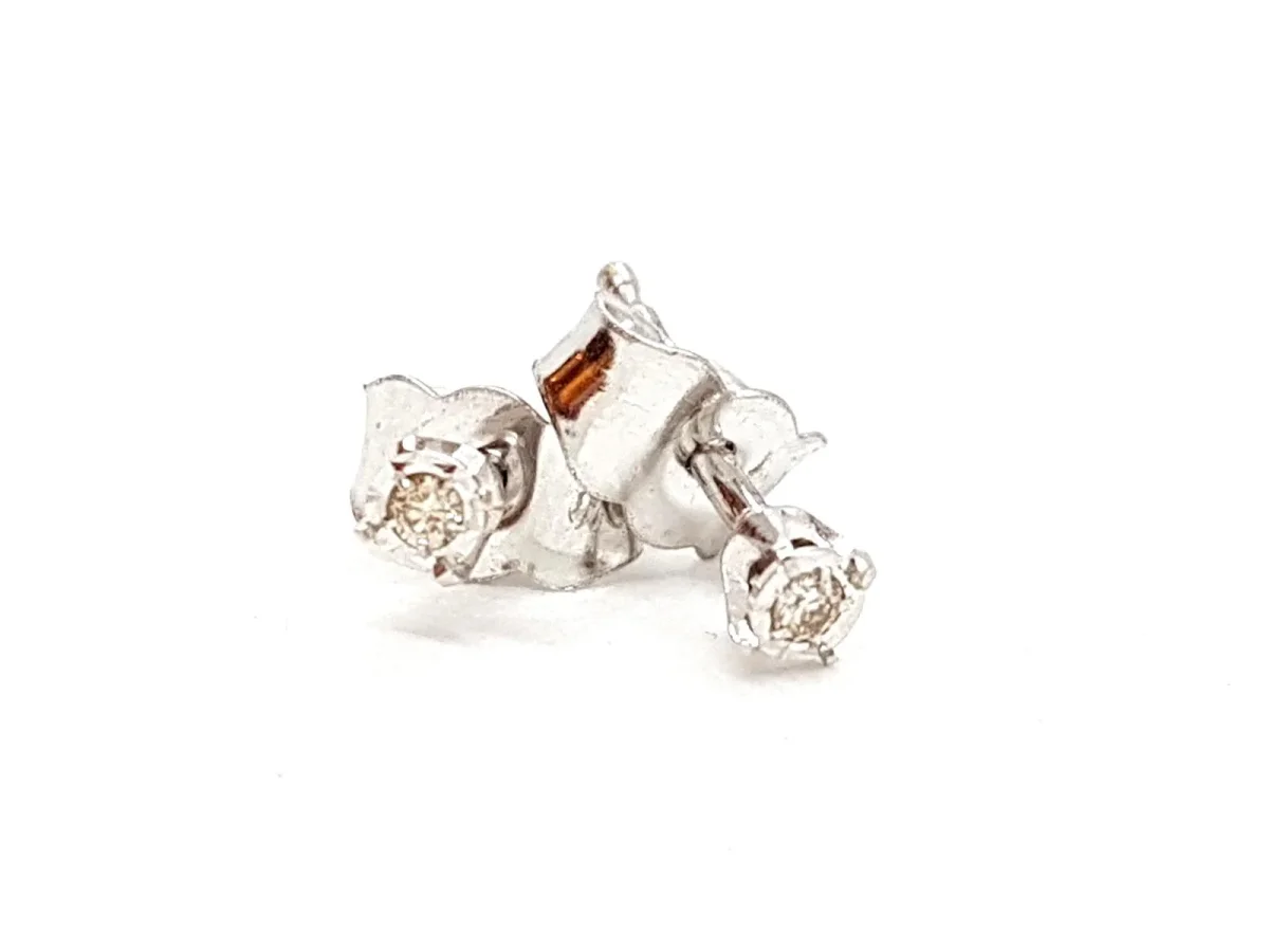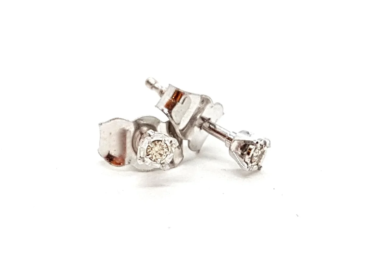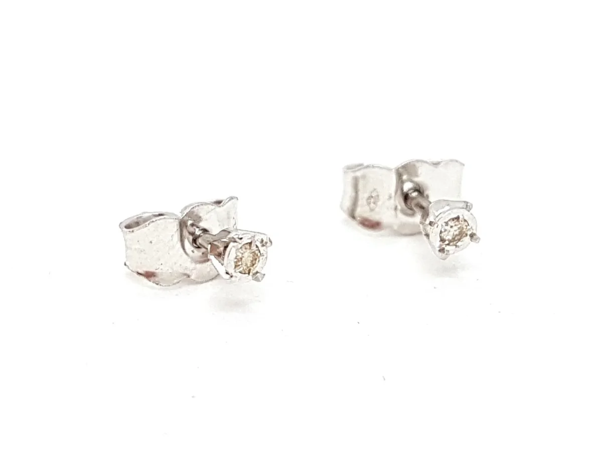 Boucles d’oreilles en or blanc 750 millièmes (18 carats), serties de deux diamants taille brillant H-SI pour environ 0,02 ct au total, dimensions: 0,25 cm x 0,25 cm, poids total: 0,72 g, état neuf