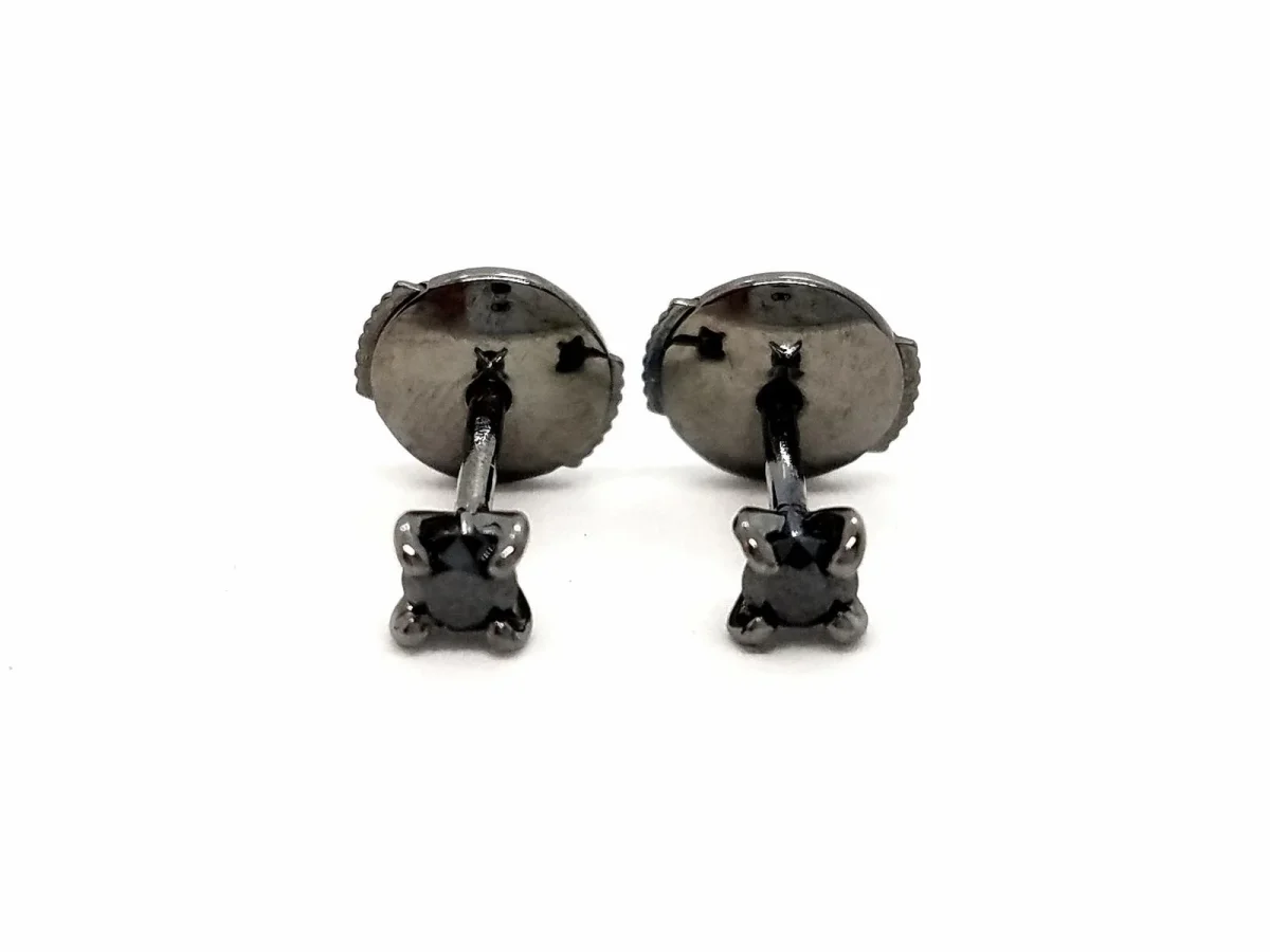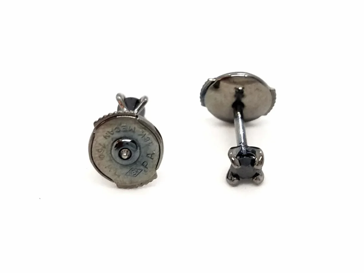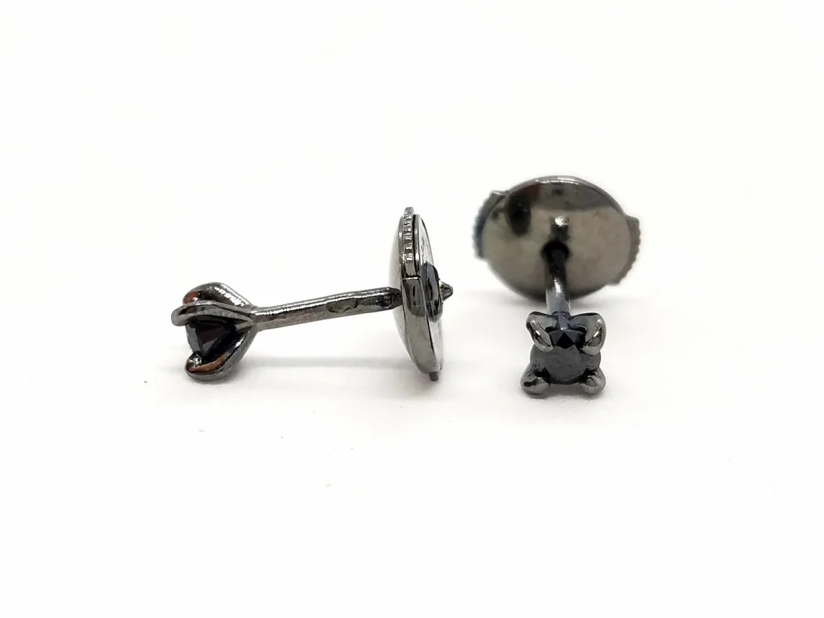 Boucles d’oreilles en or noir 750 millièmes (18 carats), serties de deux diamants noirs taille brillant pour 0,26 ct au total, diamètre: 0,30 cm, fermoir alpa, poinçon tête d’aigle sur la tige, poids total: 1,36 g, état neuf