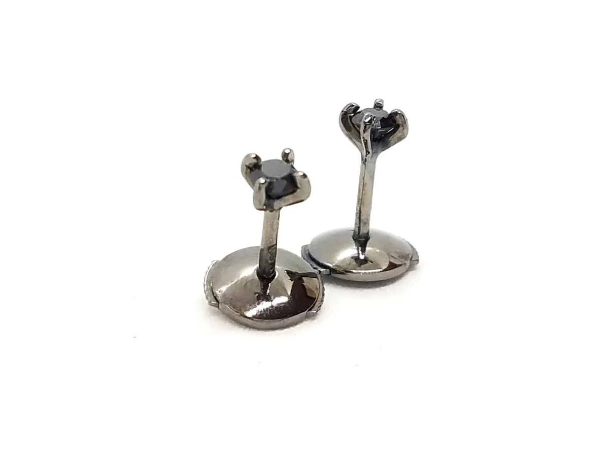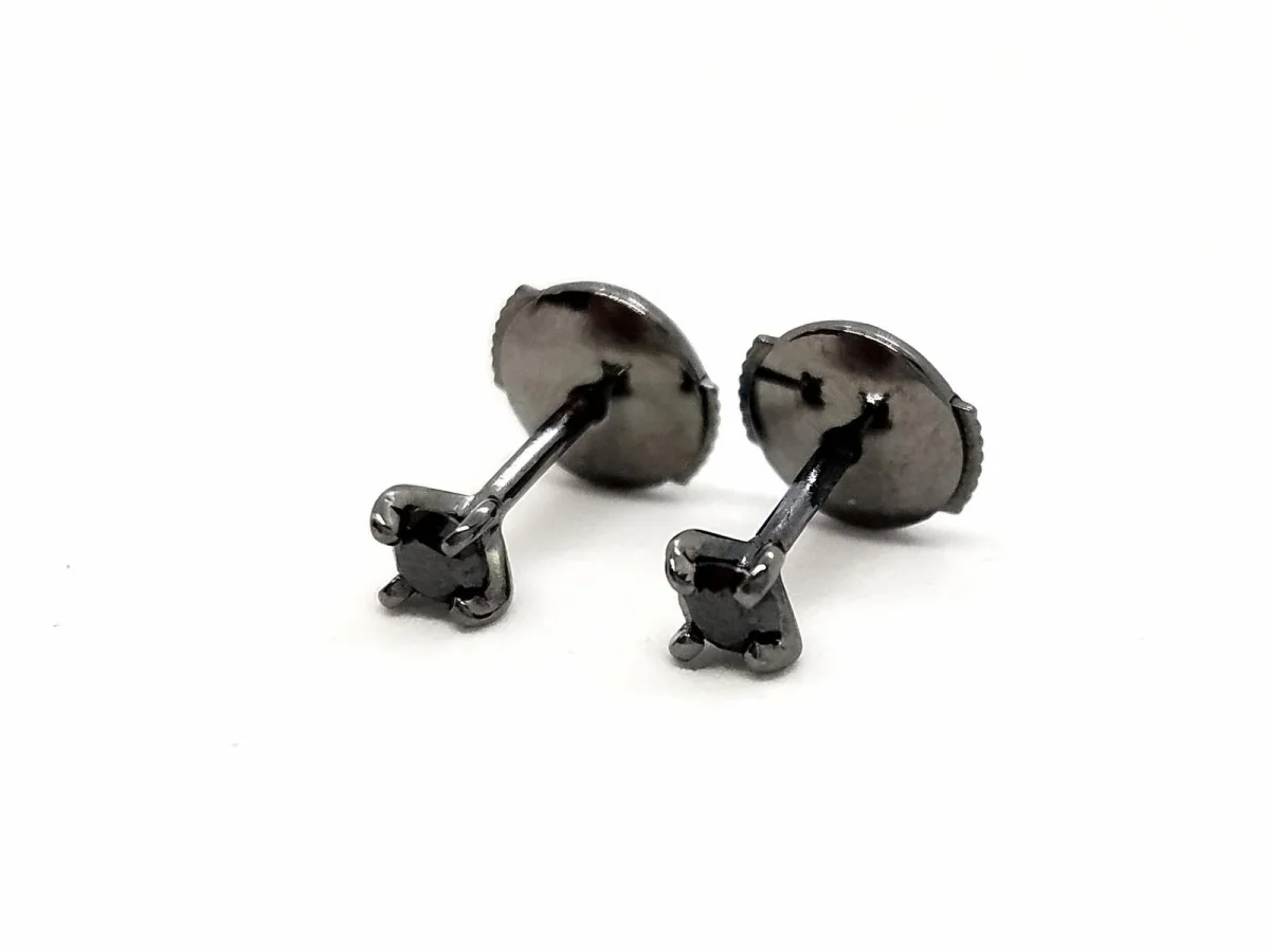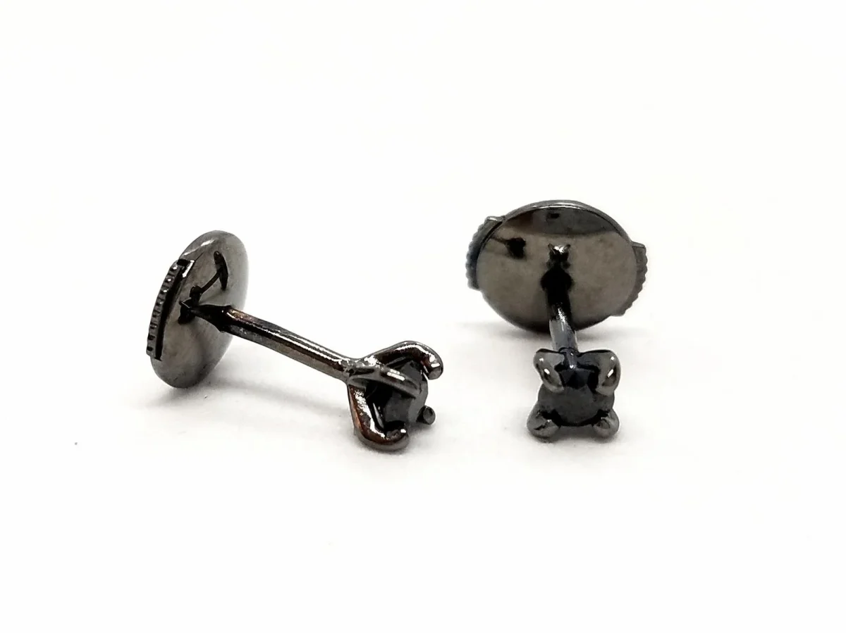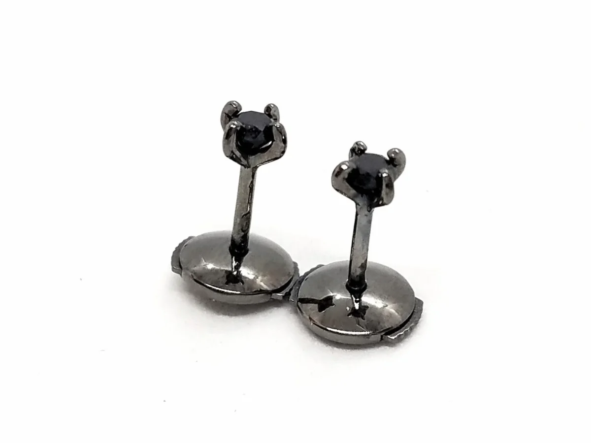 Boucles d’oreilles en or noir 750 millièmes (18 carats), serties de deux diamants noirs taille brillant pour 0,26 ct au total, diamètre: 0,30 cm, fermoir alpa, poinçon tête d’aigle sur la tige, poids total: 1,36 g, état neuf