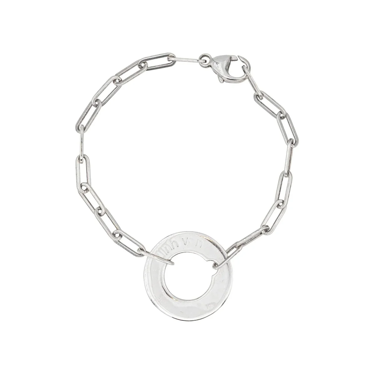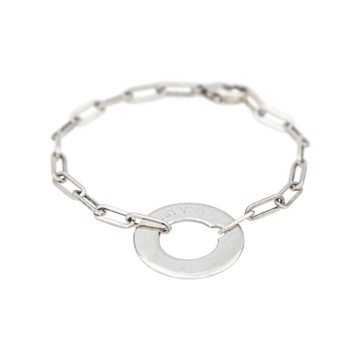 Motif signé de la Maison Dinh Van en argent 950 millièmes testé, modèle cible, maille non signée, longueur : 15,00 cm, largeur de la chaîne : 0,31 cm, diamètre de la cible : 1,90 cm, poids total : 3,94 g, bon état