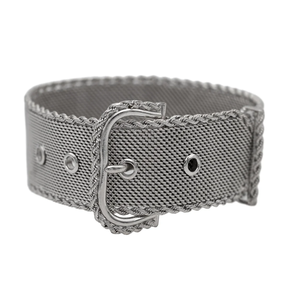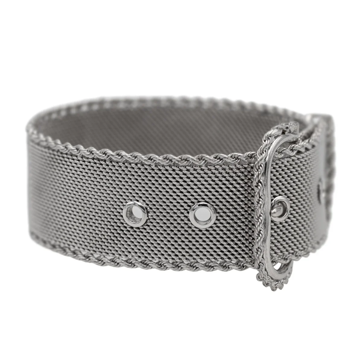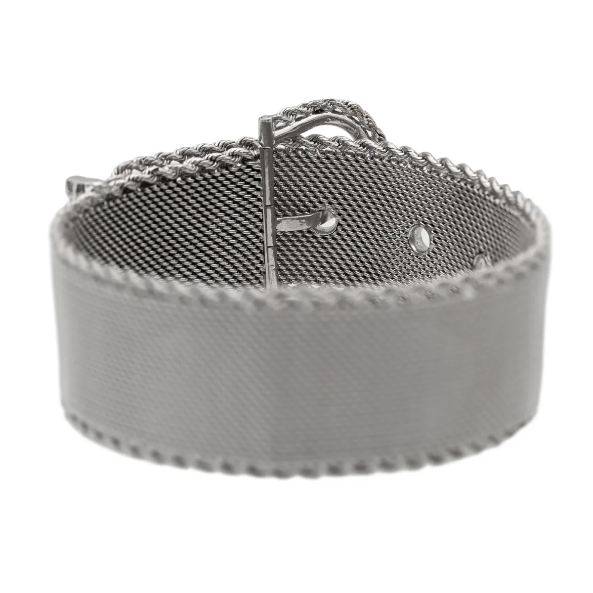 Bracelet ceinture en or blanc 750 millièmes (18 carats), longueur: 23 cm, largeur: 2,30 cm, poids total: 72,68 g, poinçon hibou, excellent état