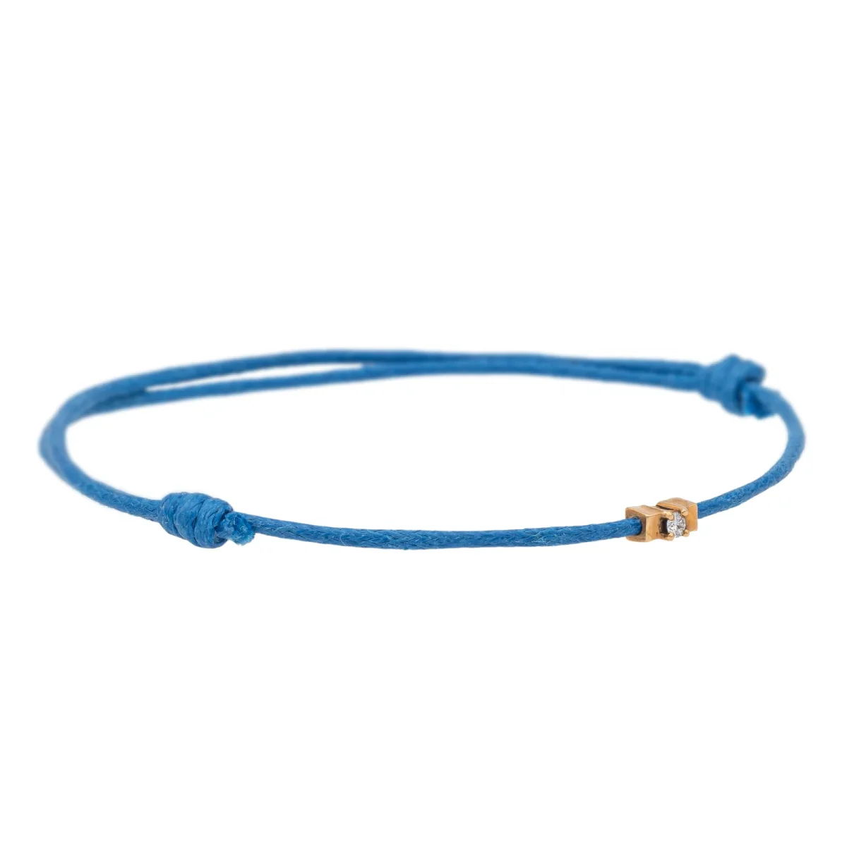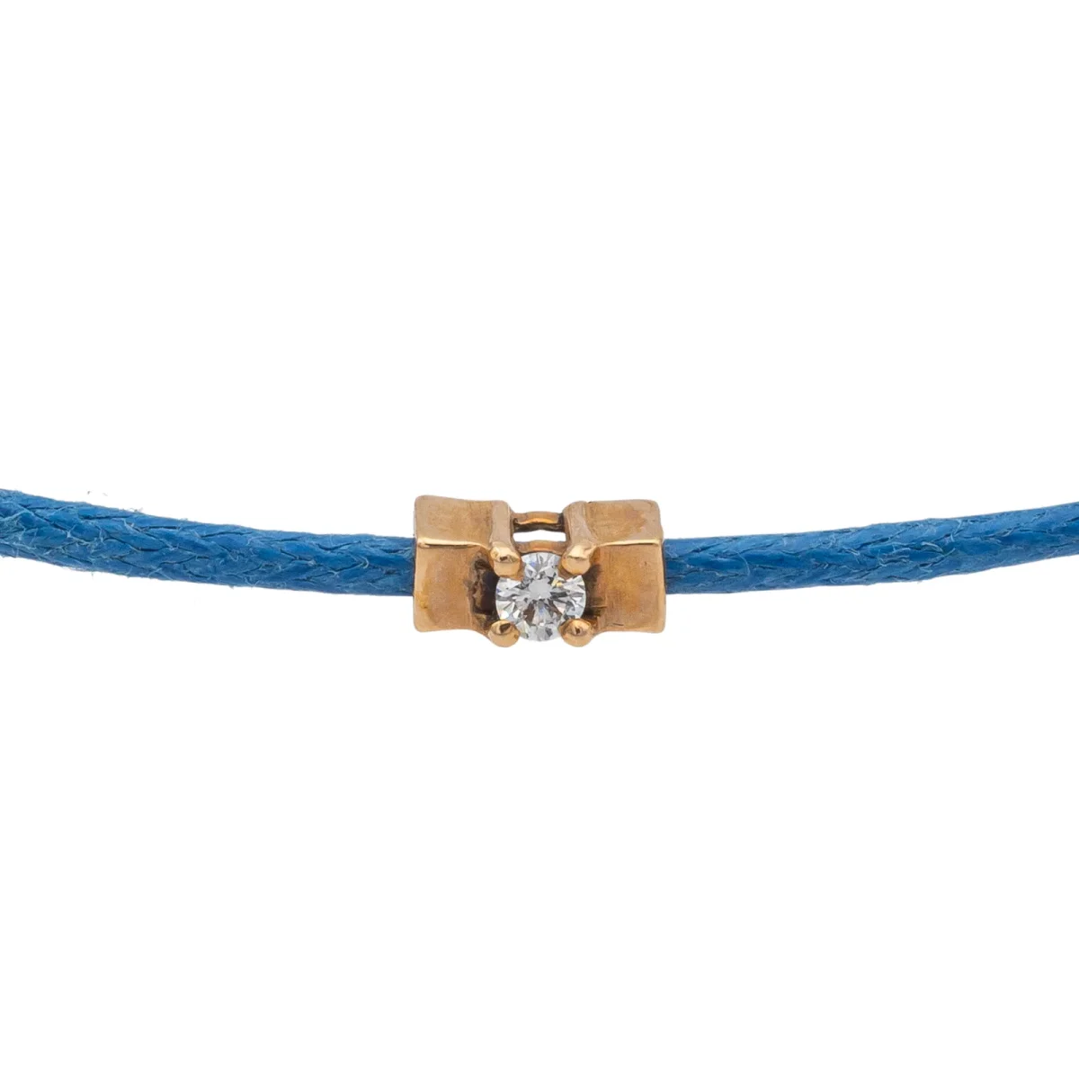 Bracelet cordon bleu jean, composé d’un motif en or rose 750 millièmes (18 carats) serti d’un diamant taille brillant G-VS de 0,04 ct, dimension du motif: 0,54 cm x 0,26 cm, poids en or: 0,23 g, poids total: 0,44 g, taille ajustable, état neuf