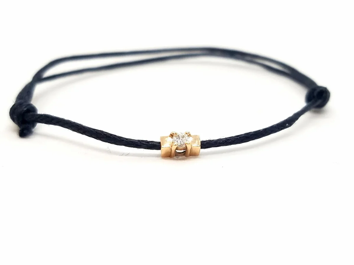 Bracelet cordon noir, composé d’un motif en or rose 750 millièmes (18 carats) serti d’un diamant taille brillant G-VS de 0,02 ct, dimension du motif: 0,48 cm x 0,22 cm, poids en or: 0,18 g, poids total: 0,42 g, taille ajustable, état neuf
