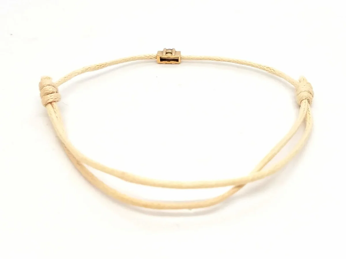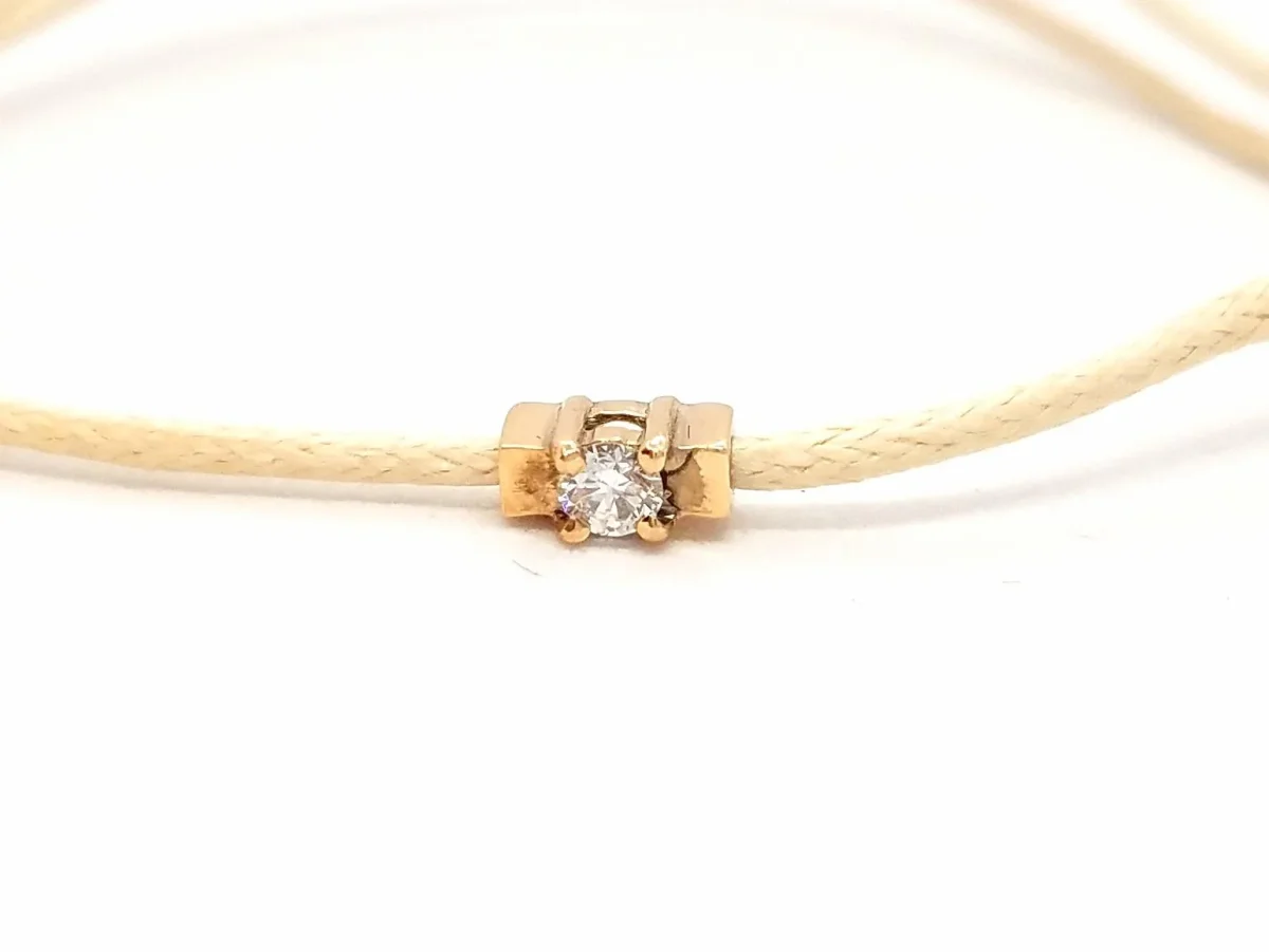 Bracelet cordon beige, composé d’un motif en or rose 750 millièmes (18 carats) serti d’un diamant taille brillant G-VS de 0,06 ct, dimension du motif: 0,54 cm x 0,26 cm, poids en or: 0,24 g, poids total: 0,51 g, taille ajustable, état neuf