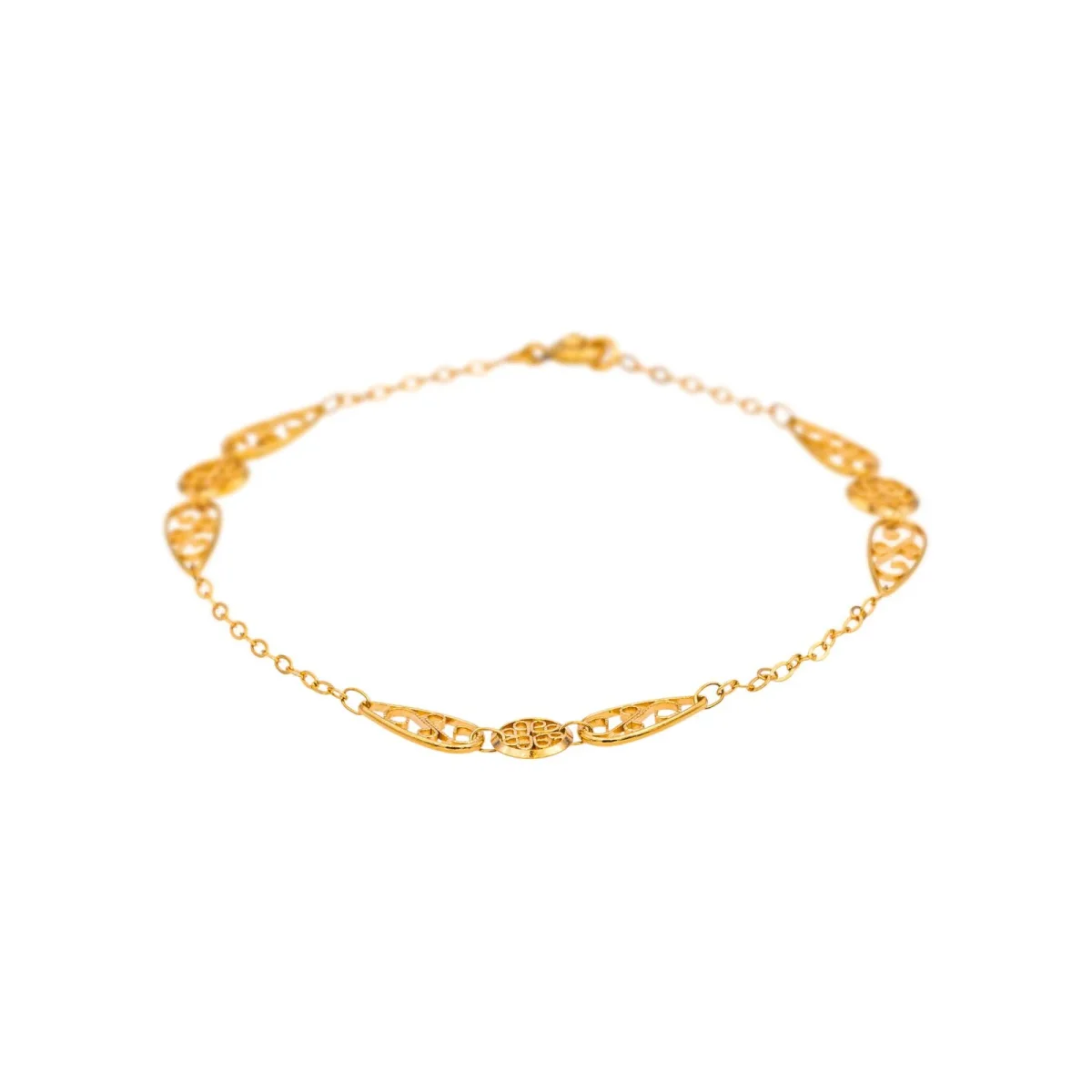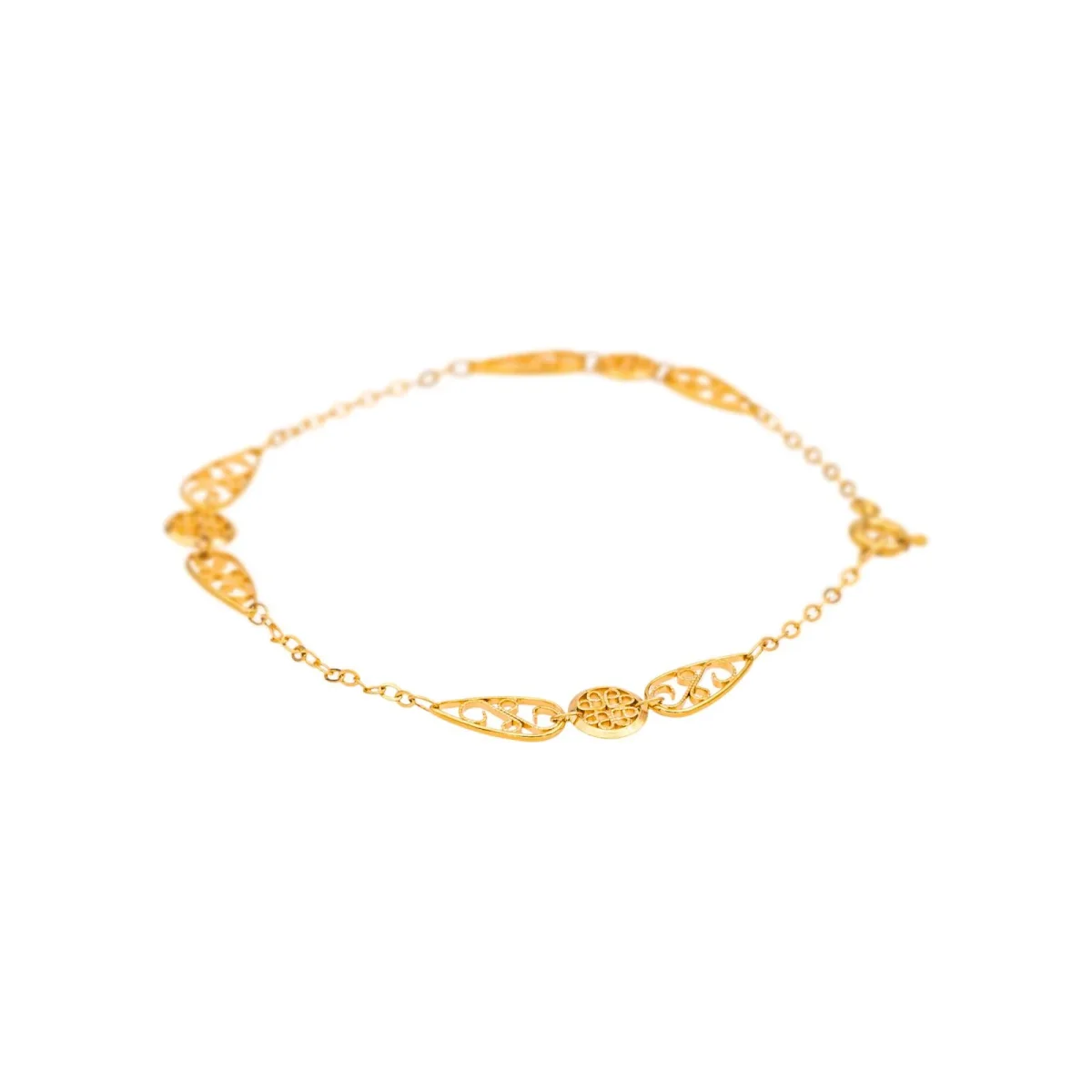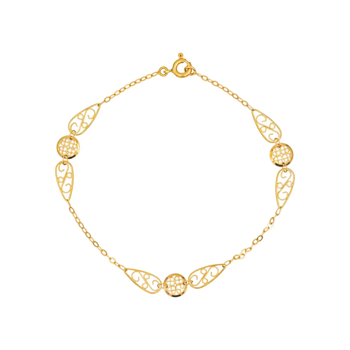 Bracelet en or rose 750 millièmes (18 carats), maille forçat, motif filigrane, longueur : 18,00 cm, largeur : 0,64 cm, épaisseur : 0,08 cm, poids total : 2,58 g, fermoir mousqueton, poinçon tête d’aigle, excellent état