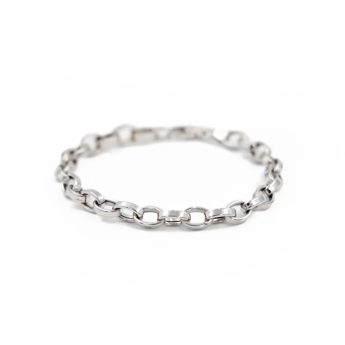 Bracelet en or blanc 750 millièmes (18 carats), maille spartacus, longueur: 19 cm, Largeur: 0,6 cm, Poids total: 8,73 g, Poinçon hibou, Excellent état