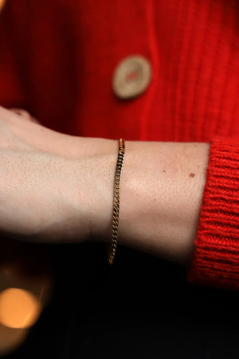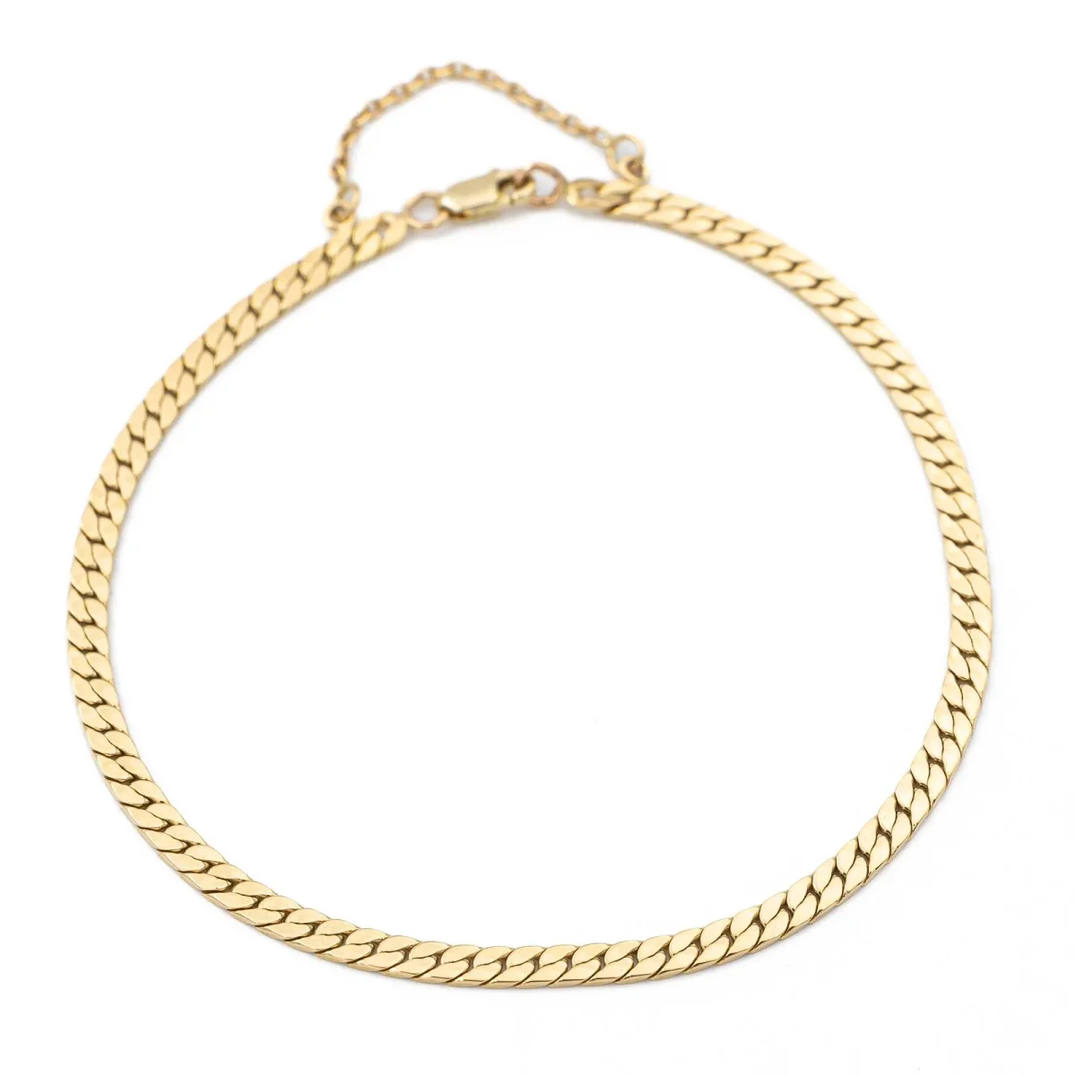 Bracelet or jaune 750 millièmes (18 carats), maille anglaise plate, longueur: 19 cm, largeur: 0,26 cm, épaisseur: 0,07 cm, poids total: 5,94 g, fermoir avec chainette de sécurité, poinçon tête d’aigle, excellent état