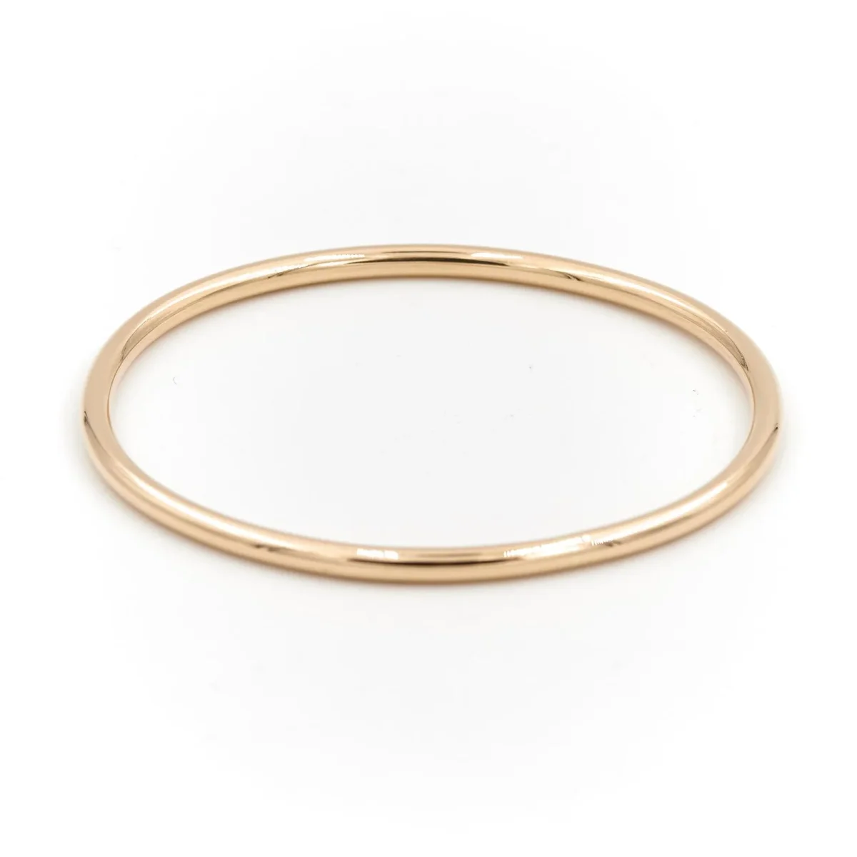 Bracelet en or jaune 750 millièmes (18 carats), jonc fermé fil rond de forme ovale, longueur: 19 cm, épaisseur du fil : 0,34 cm, poids total: 28,41 g, poinçon tête d’aigle, excellent état.