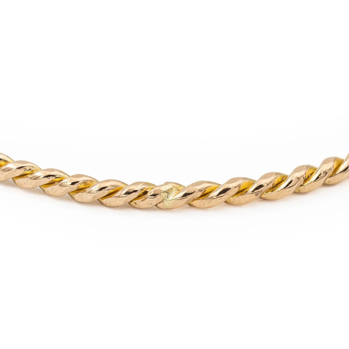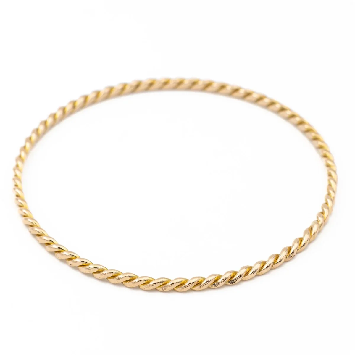 Bracelet jonc torsadé or jaune 750 millièmes (18 carats), diamètre intérieur: 6,40 cm, longueur: 21,5 cm, largeur: 0,28cm, poids total: 11,63 g, poinçon hibou, excellent état