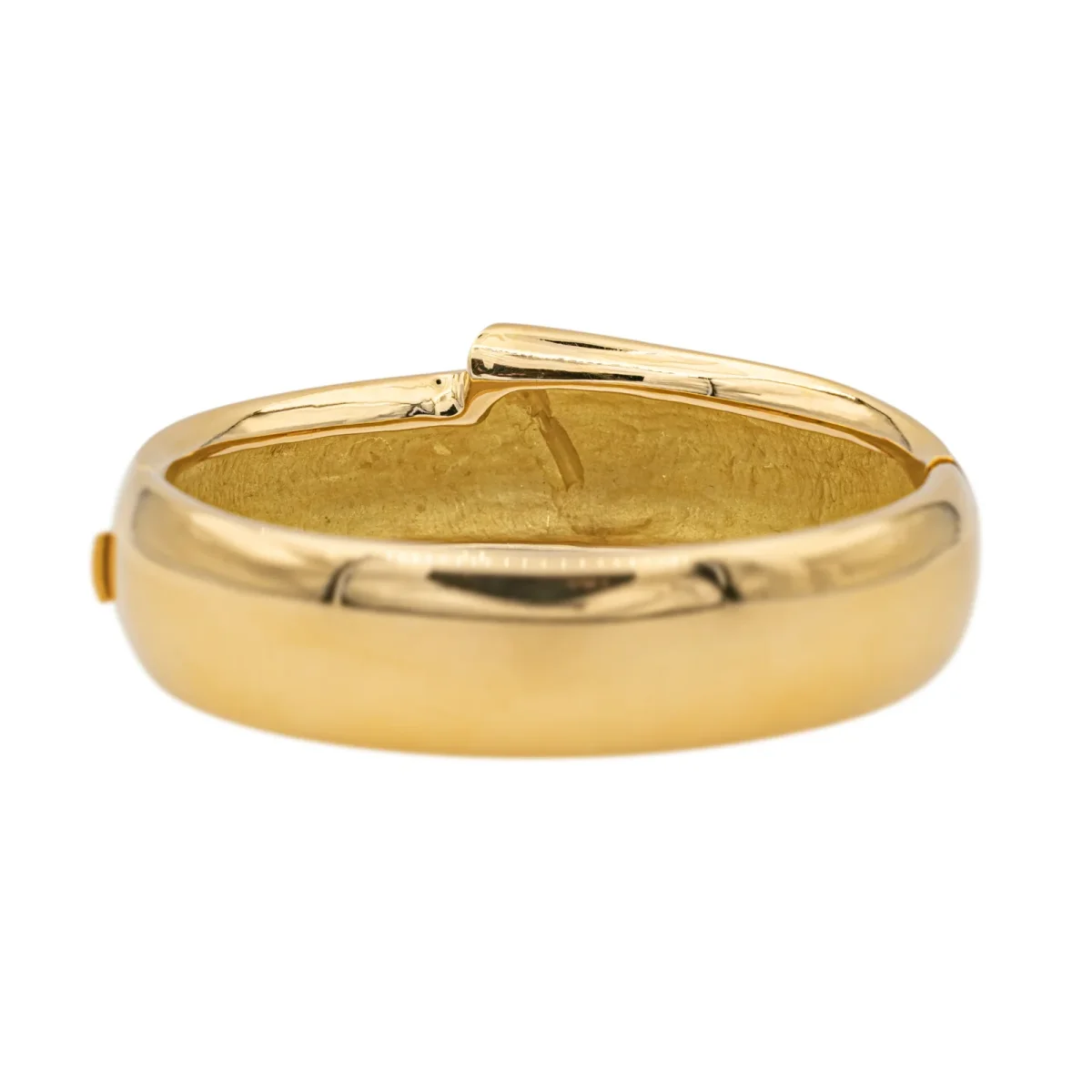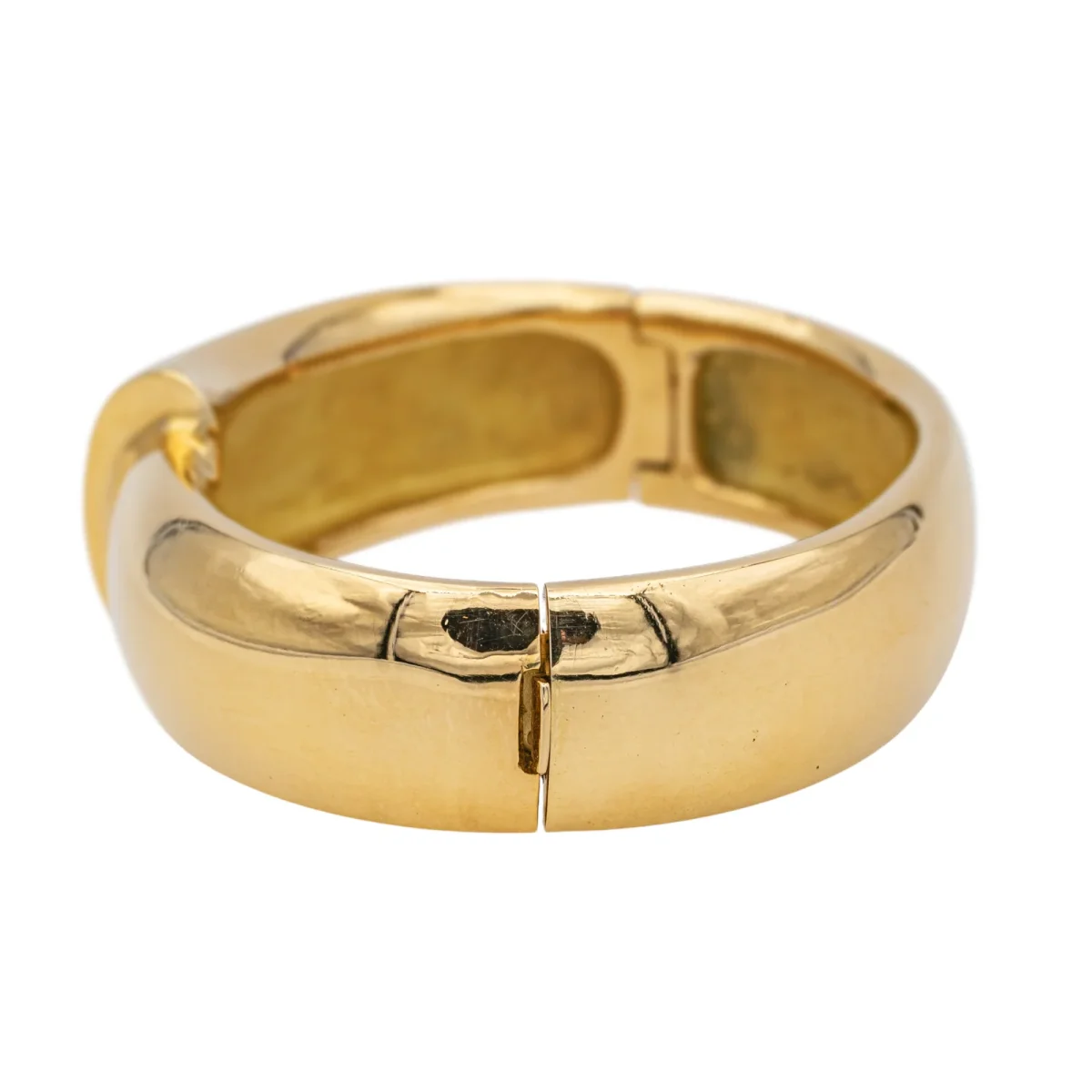 Magnifique bracelet en Or jaune 750 millièmes (18 carats), jonc ouvrant ovale, massif, Poinçon tête d’aigle, taille: 19,5 cm, Poids: 92.05 g, diamètre: 6,2 cm x 5 cm, largeur: 1,6 cm