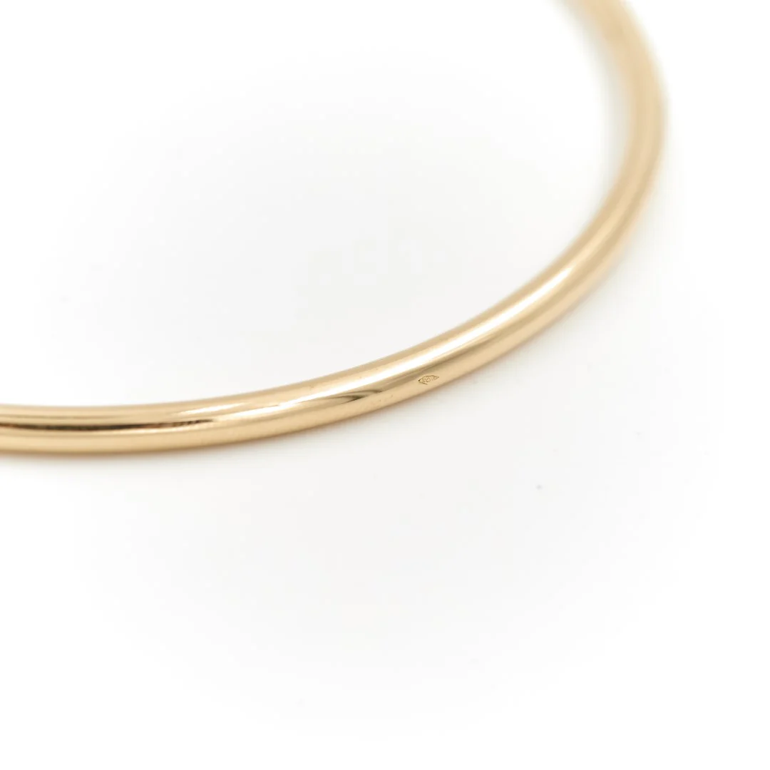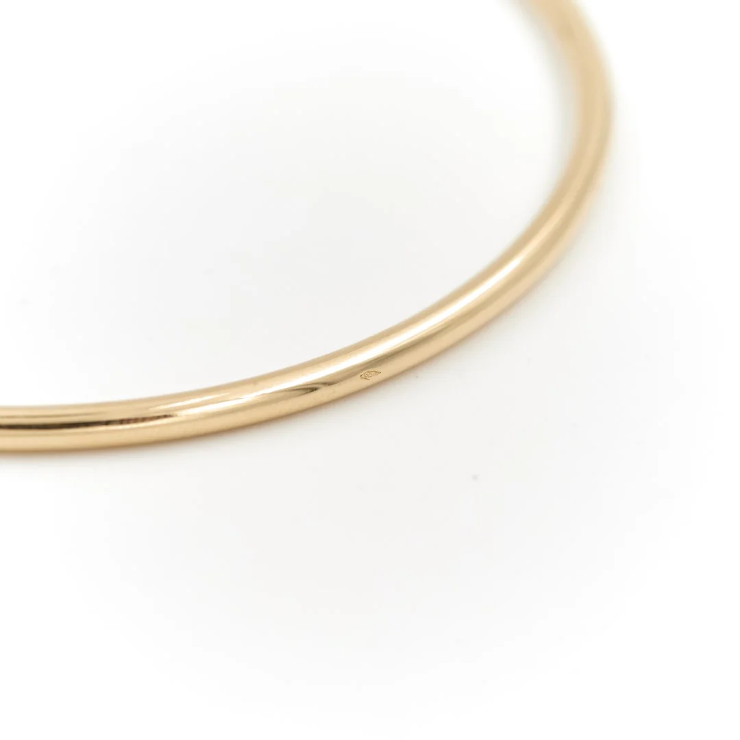 Bracelet en or jaune 750 millièmes (18 carats), jonc fil rond, diamètre : 6,2cm, longueur : 19cm, Epaisseur du maillon : 0,27cm, poids : 16,47gr, poinçon tête d’aigle, excellent état.