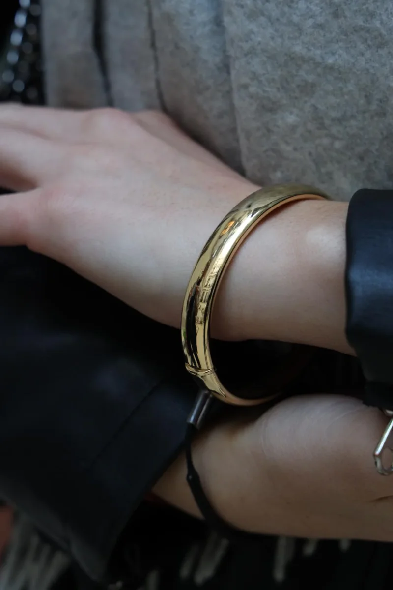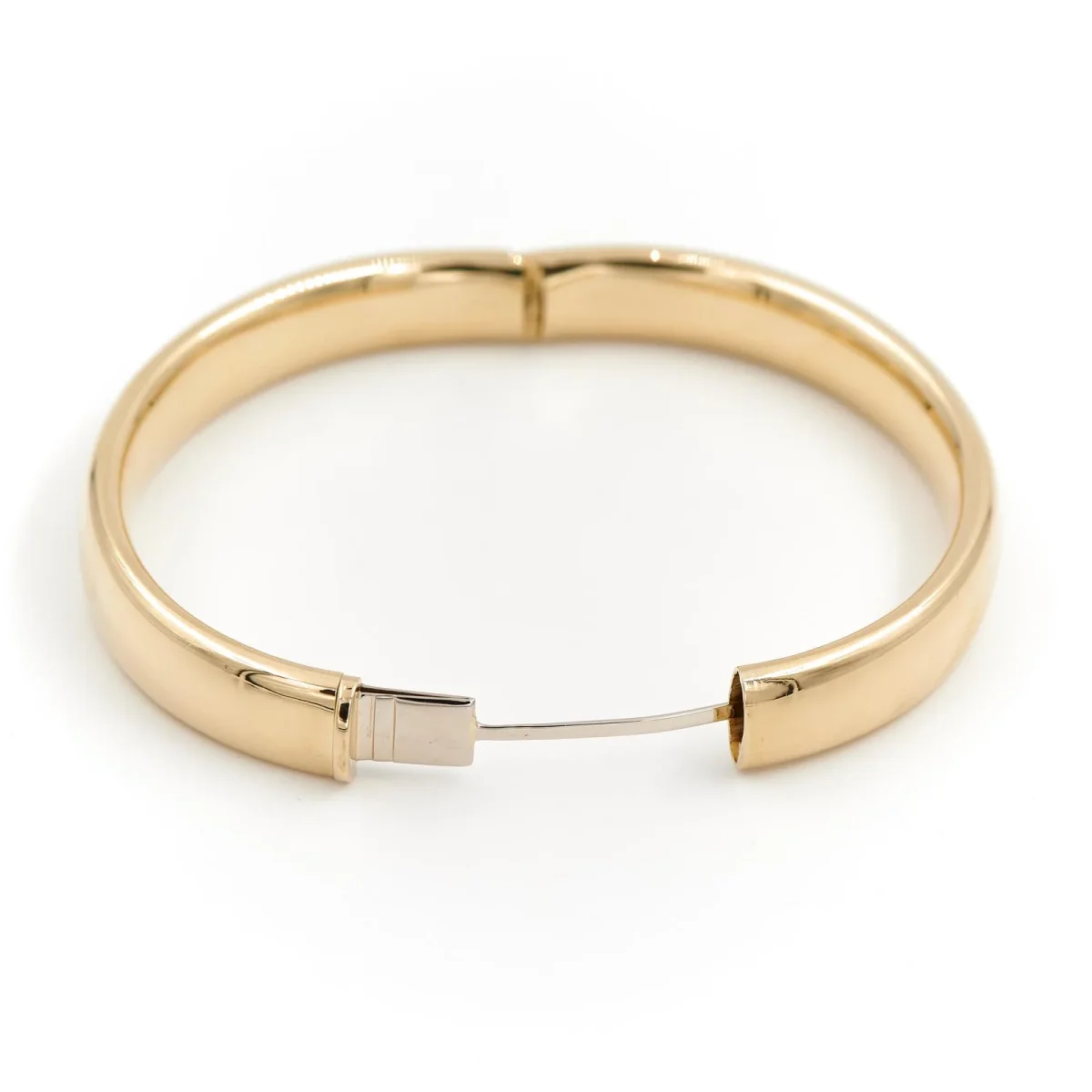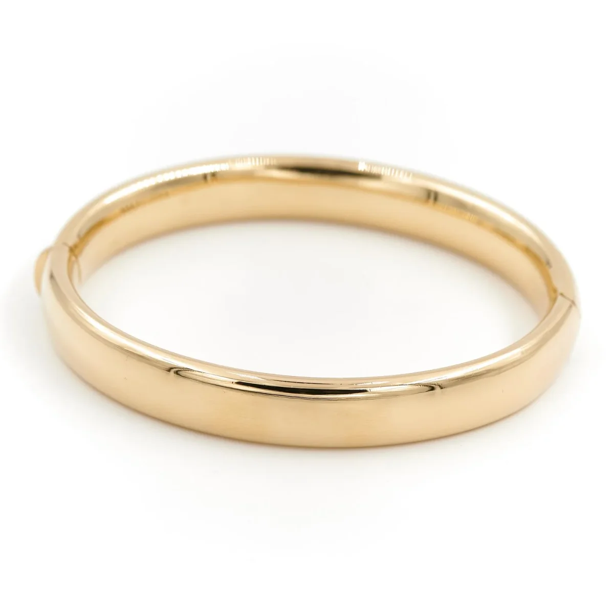 Bracelet en or jaune 750 millièmes (18 carats),jonc ouvrant, longueur: 18 cm, largeur: 0,98 cm, poids total: 31,92 g, poinçon tête d’aigle, excellent état.